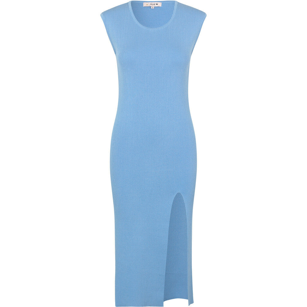 Lang strikket kjole i ribbekvalitet. Kjolen har en tettsittende passform, en rund hals og en splitt i siden.