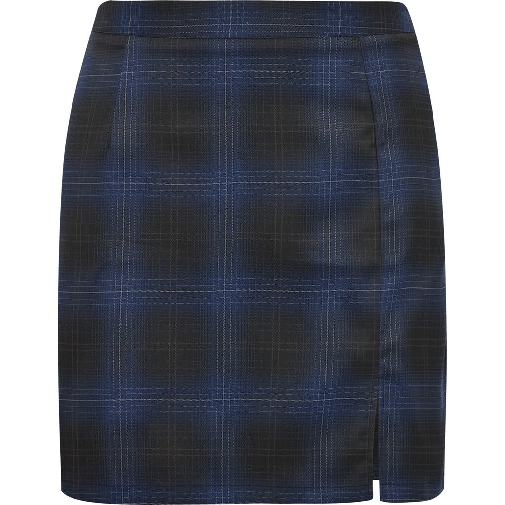 Skjørtet har et tøft rutemønster, liten splitt i siden og skjult glidelåslukking i siden.