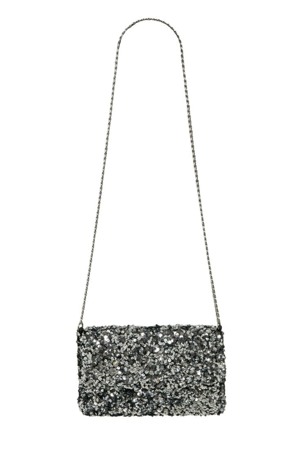 Veldig fin veske med paljetter som kan brukes cross over eller som clutch.