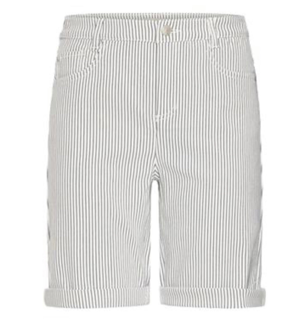 Ena Shorts fra Fransa er en allsidig og flatterende shorts med midt-høy midje og tettsittende passform. Den er designet i en myk og stretchy viskoseblanding, som gir både komfort og en elegant silhuett. Shortsen har en klassisk stripet design, og bena kan brettes opp etter ønske for en mer avslappet look. Tilgjengelig i flere farger – perfekt for sommergarderoben!