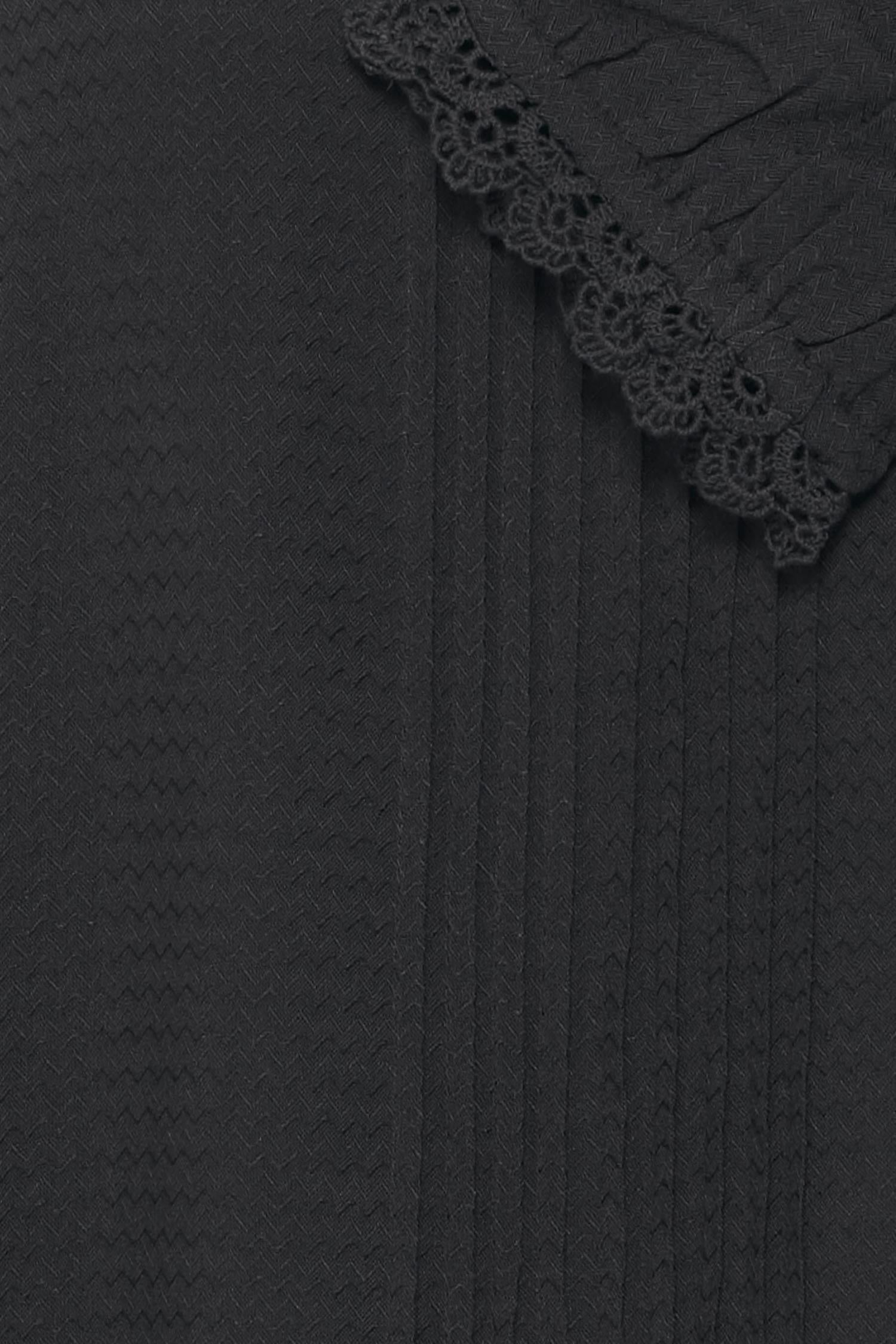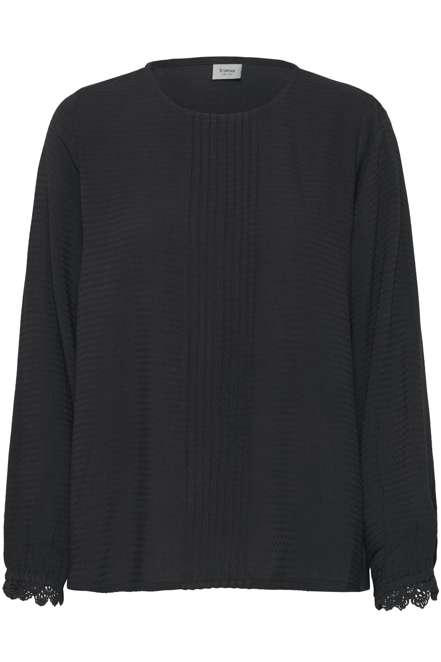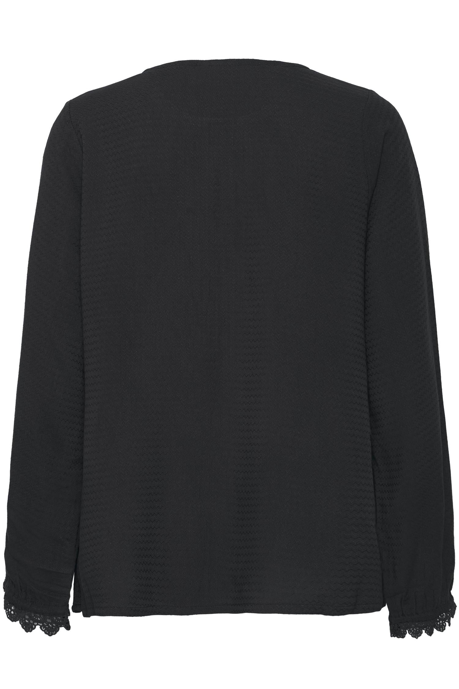 Boatneck bluse fra Fransa. Blusen har lange ermer, strikk i ermet med blondedetaljer. Tilgjengelig i flere farger.