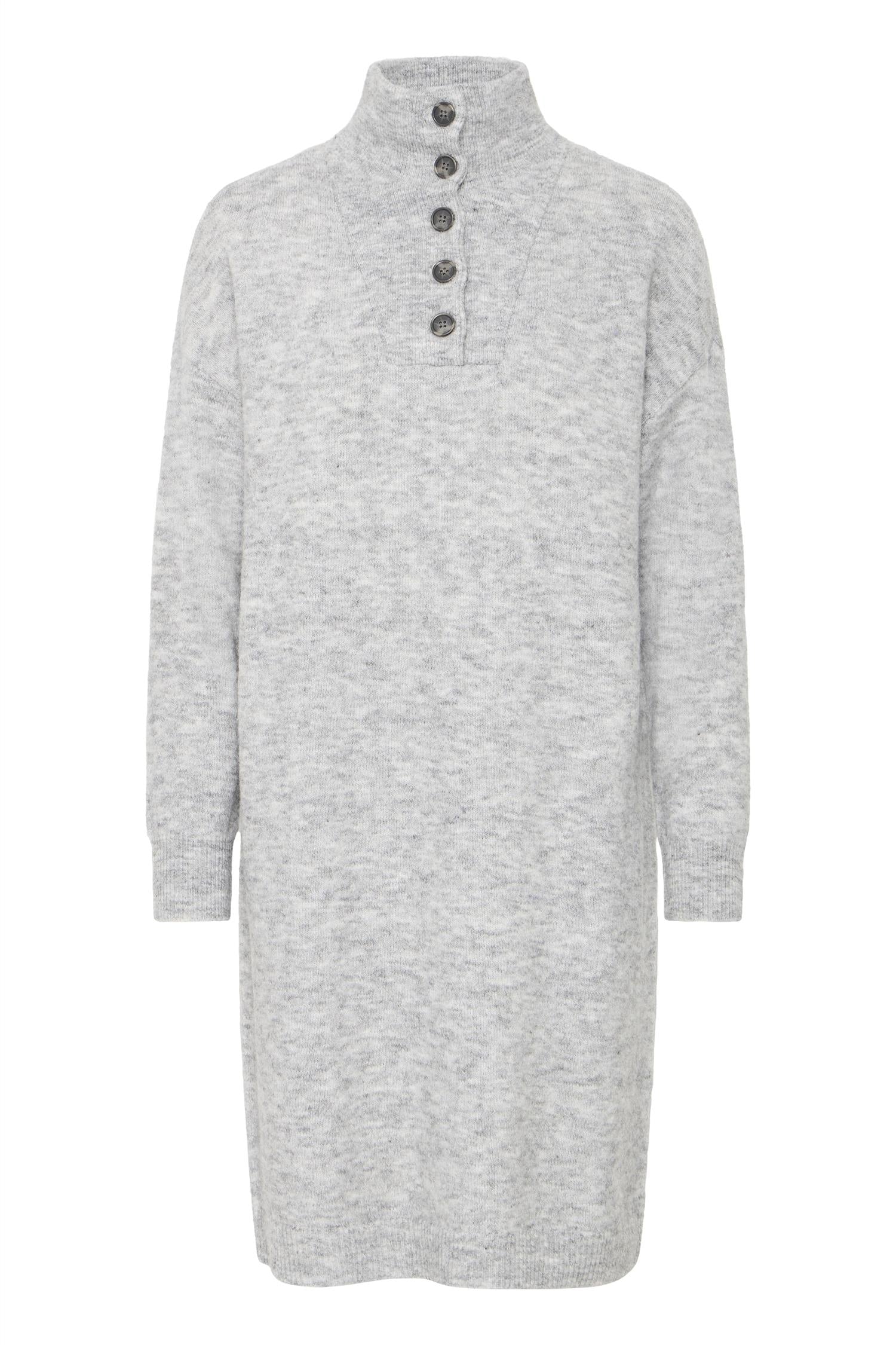 Sanny Dress fra Fransa er en komfortabel og stilsikker strikkekjole som kombinerer varme og feminitet. Med sitt enkle utrrykk og klassiske detaljer er den et perfekt plagg til høst- og vintersesongen. Knelang lengde, og lange ermer.
