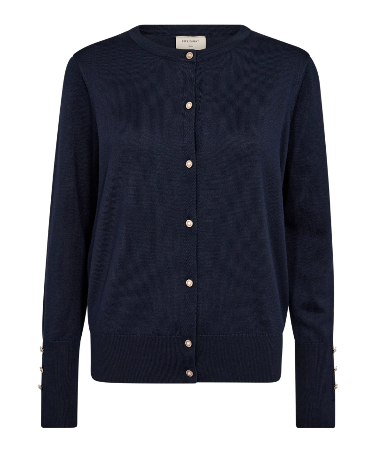 Enkel men elegant cardigan som kan brukes til alle anledinger. Cardiganen har rundhals, casual fit, og knapper og mansjetter med perler.