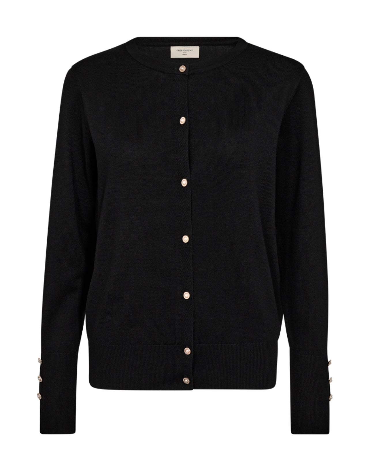 Enkel men elegant cardigan som kan brukes til alle anledinger. Cardiganen har rundhals, casual fit, og knapper og mansjetter med perler.