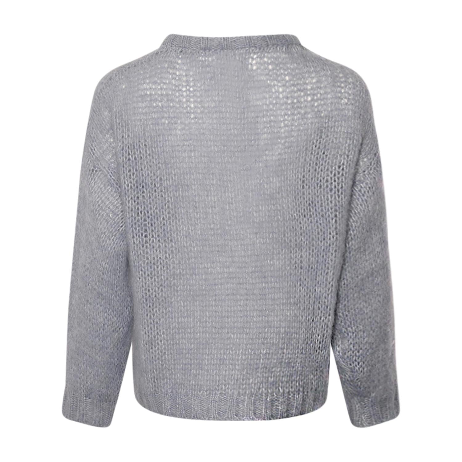 Delta-genseren er strikket med store pinner som gjør genseren lett og luftig i utseendet. Genseen har ribbede mansjetter, ribbet kant og ribbet krage.