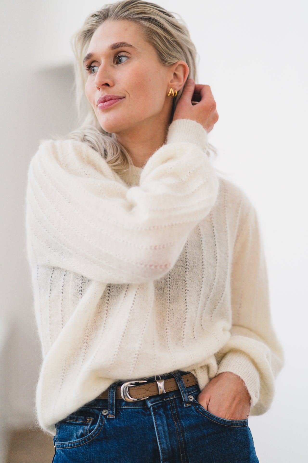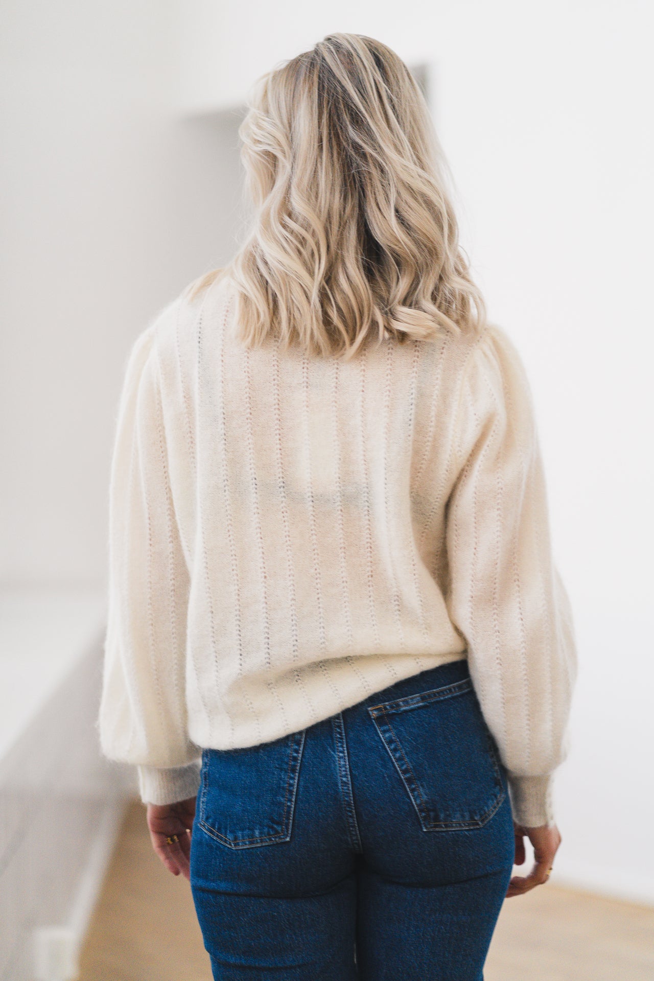 Amalie Puff Pullover er en stilren og komfortabel genser laget av en unik blanding av materialer. Denne pulloveren er perfekt for å tilføre et sofistikert preg til din garderobe.