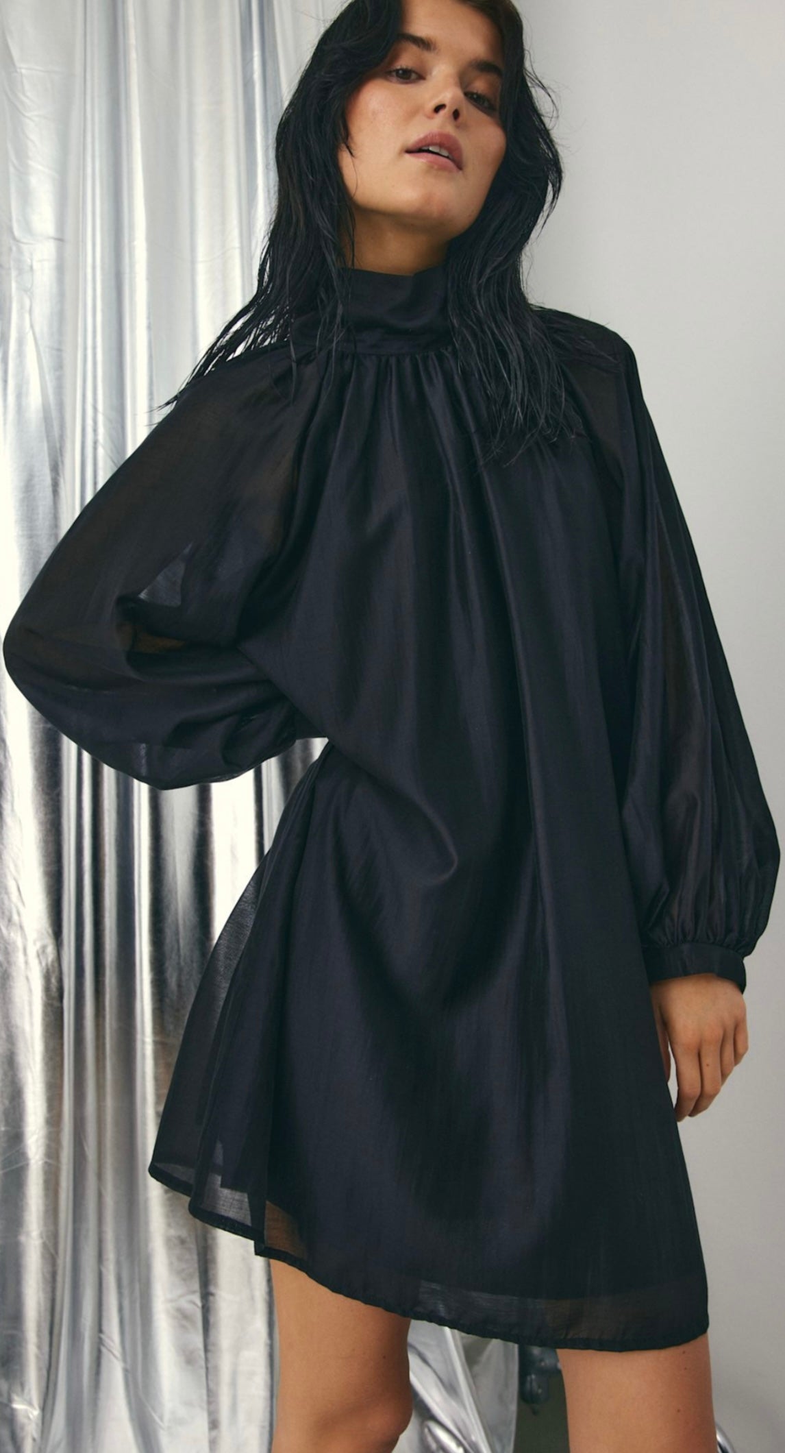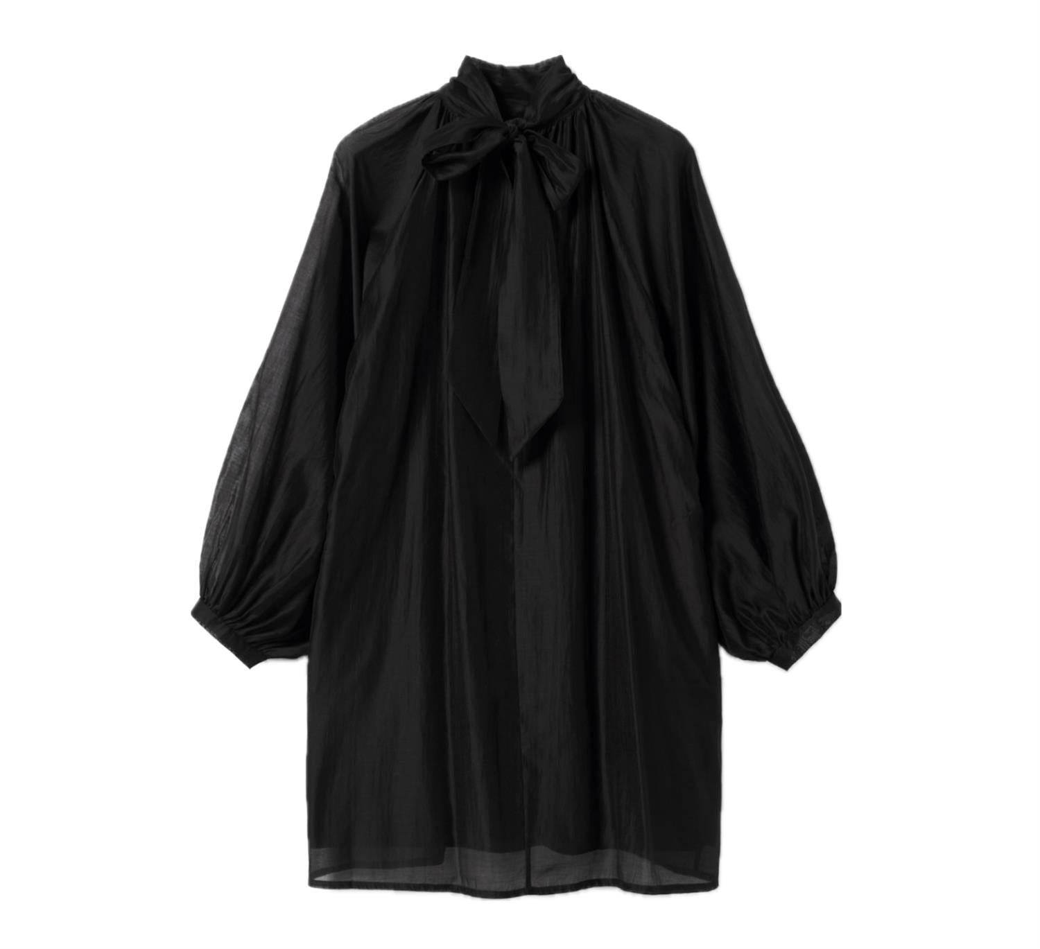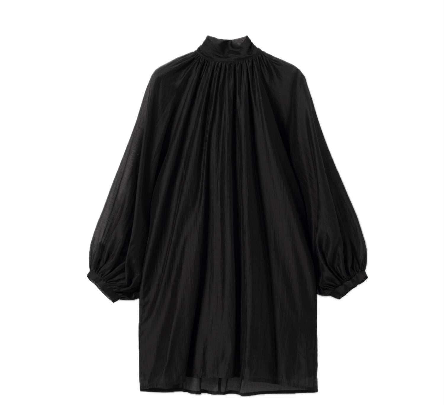 Lorenia Dress fra Noella er en elegant og moderne kjole som skiller seg ut med sin enkle, men sofistikerte design. Den har en løs og behagelig passform som gir et lett og flytende uttrykk, samtidig som den er flatterende på ulike kroppstyper. Den høye halsen tilfører et stilrent og trendy preg, mens de lange ermene skaper en balansert og klassisk silhuett. Den sorte fargen gjør kjolen tidløs og allsidig, et plagg du kan bruke sesong etter sesong.