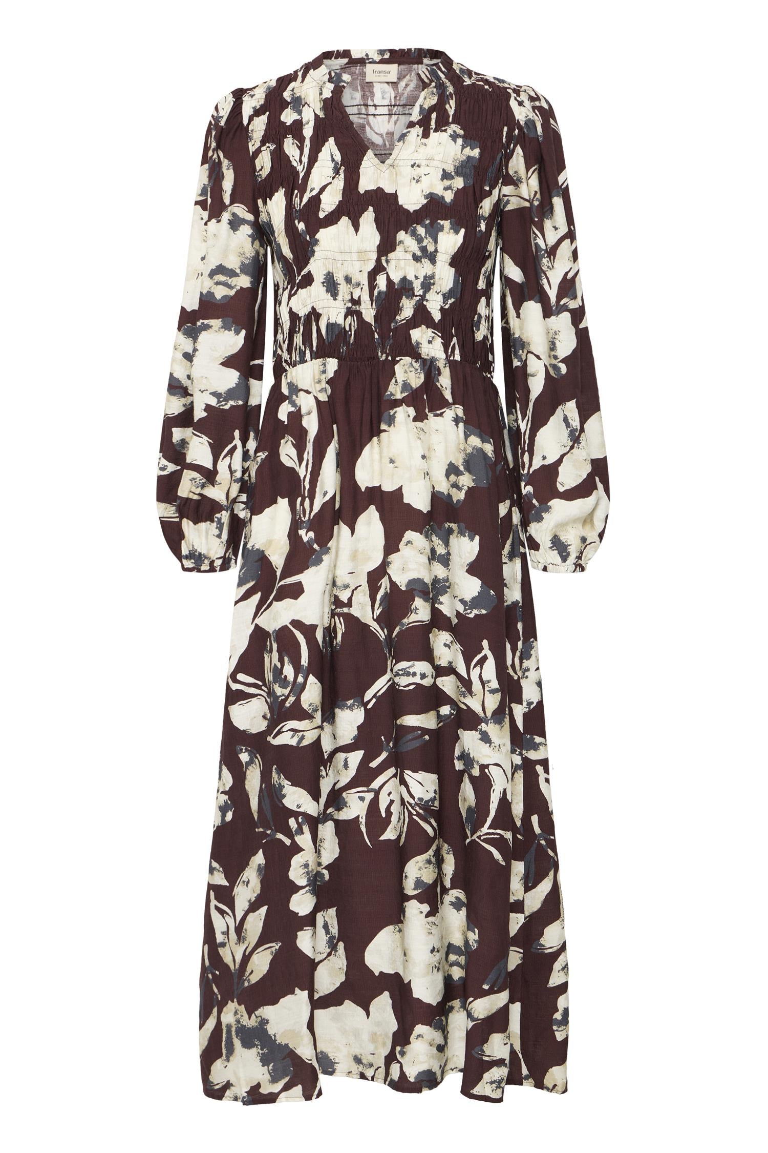Ariana er en flott midikjole med nydelig mønster, v-hals og lommer i sidene.