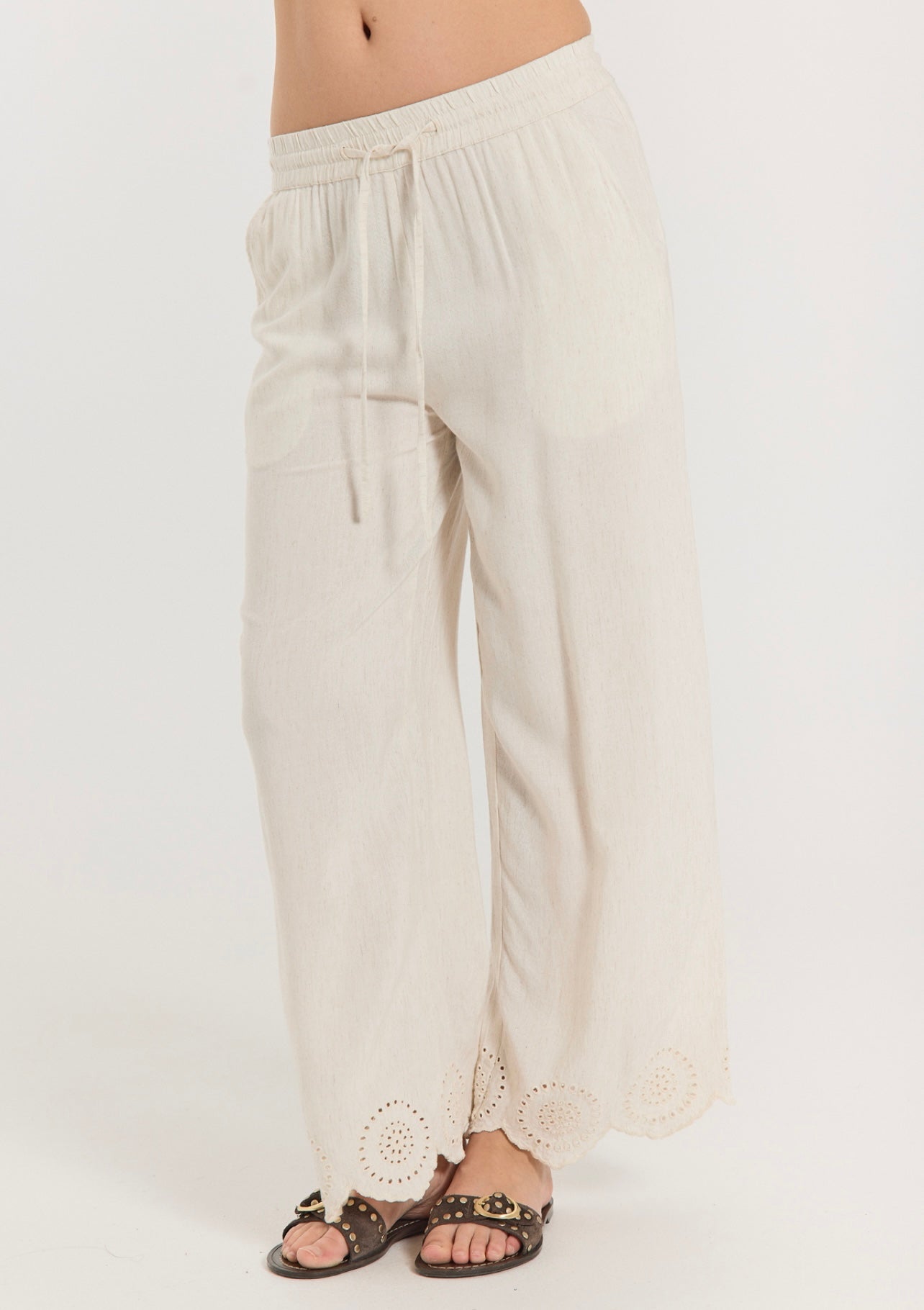 Linus Pants fra Freequent – Elegante og luftige bukser med broderidetaljer