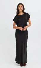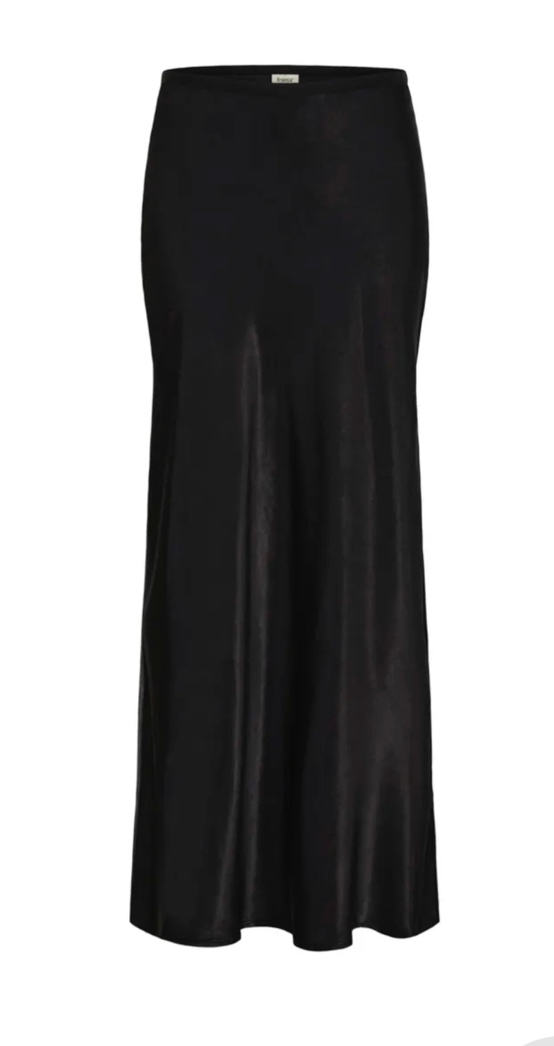 Shina Skirt fra Fransa er et langt og elegant skjørt med høyt liv og flatterende A-fasong. Skjørtet har glidelås bak og sømløse linjer som gir en stilren og tidløs look.