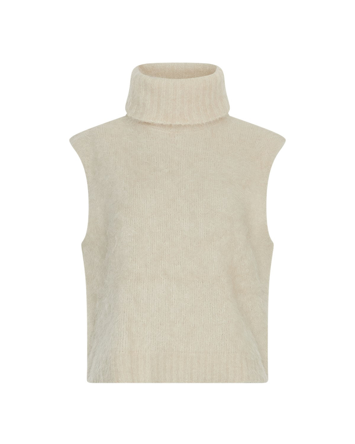 Deilig og myk oversized strikkevest. Vesten har en ribbestrikket høy hals og kant for struktur.