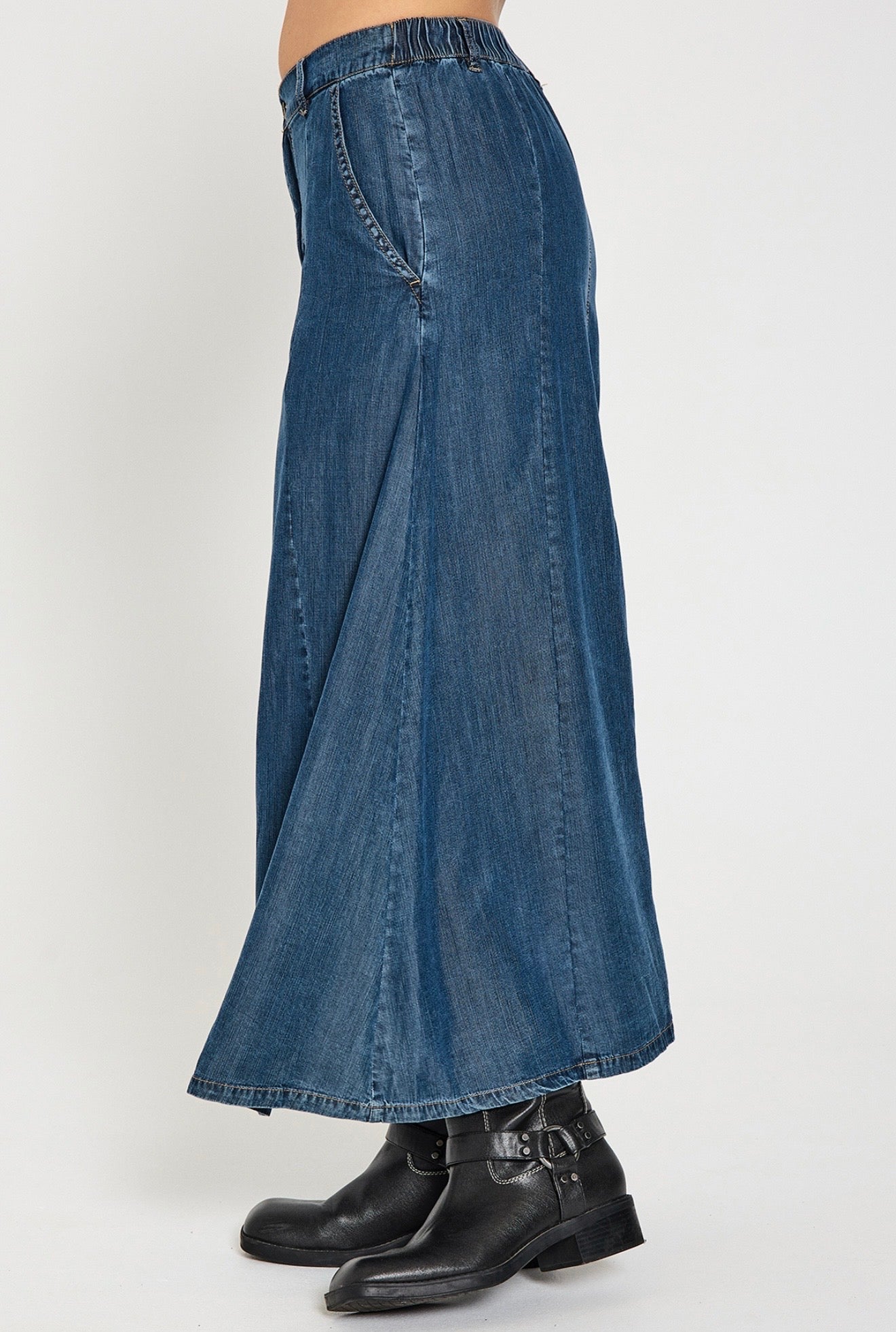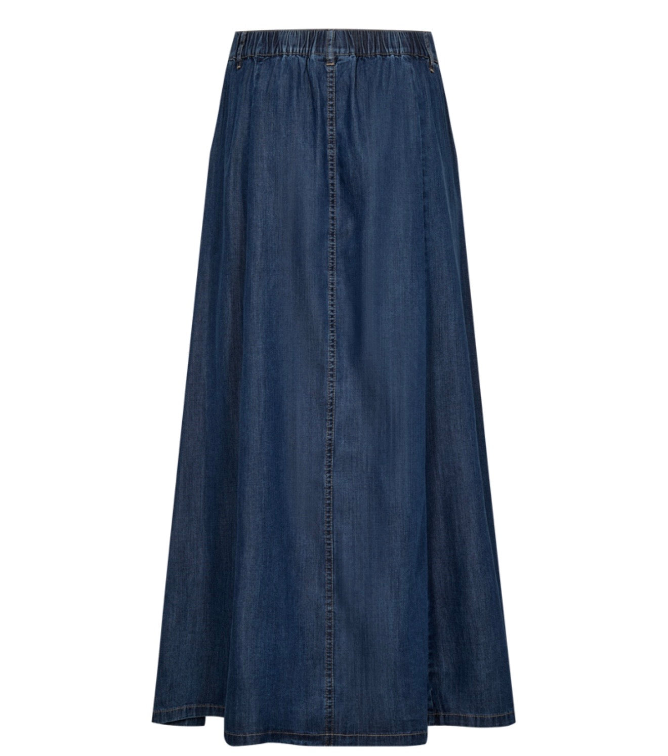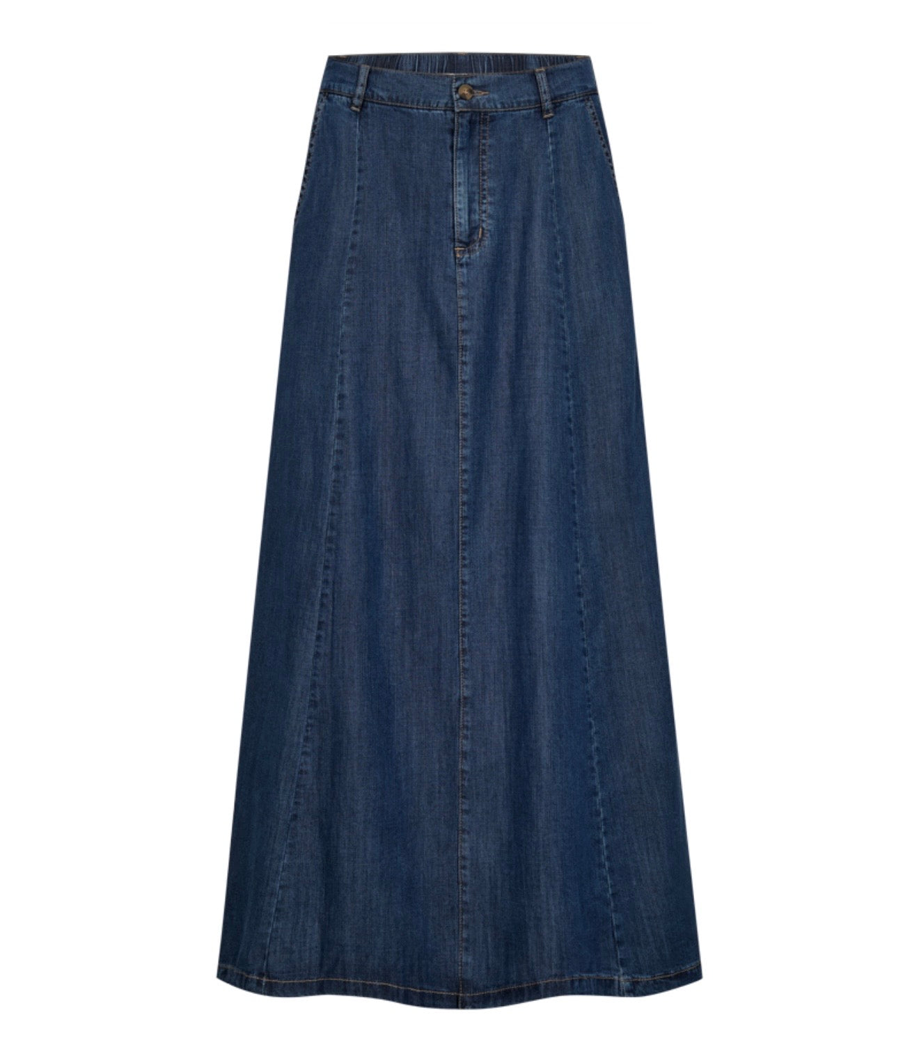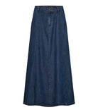Wilke Skirt fra Freequent er et stilrent og tidløst denimskjørt med en feminin A-fasong som faller pent fra livet. Skjørtet har høy midje og en flatterende lengde som gjør det enkelt å style til både hverdags og mer pyntede anledninger.