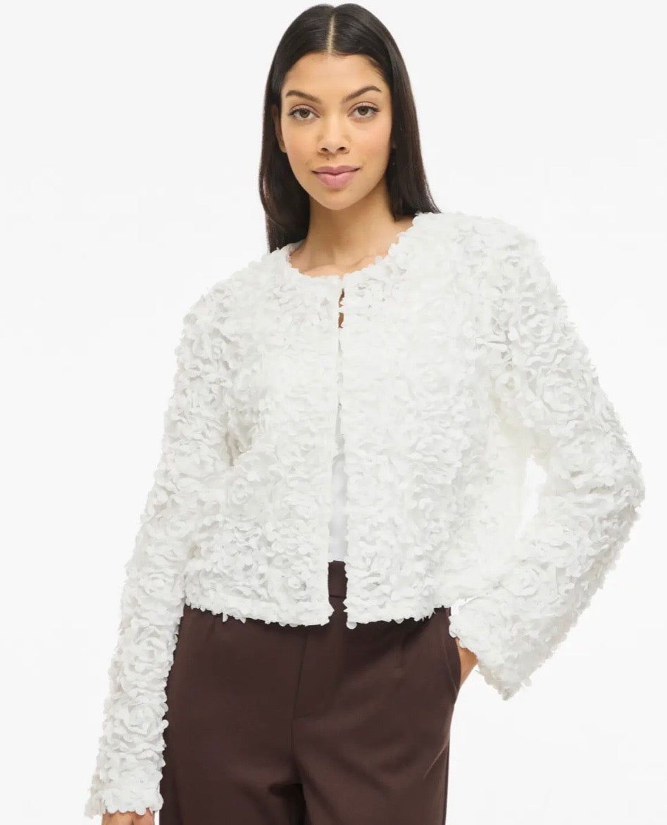En elegant og trendy cardigan som løfter ethvert antrekk. Rosie Cardigan fra Vila kommer i en unik tekstur som gir et stilig uttrykk. Den har en kort passform, rund hals og lange ermer - perfekt å style både til hverdags oog fest. Bruk den over en kjole for en sofistikert look, eller kombiner den med jeans og boots for en mer asvlappet, men chic stil.