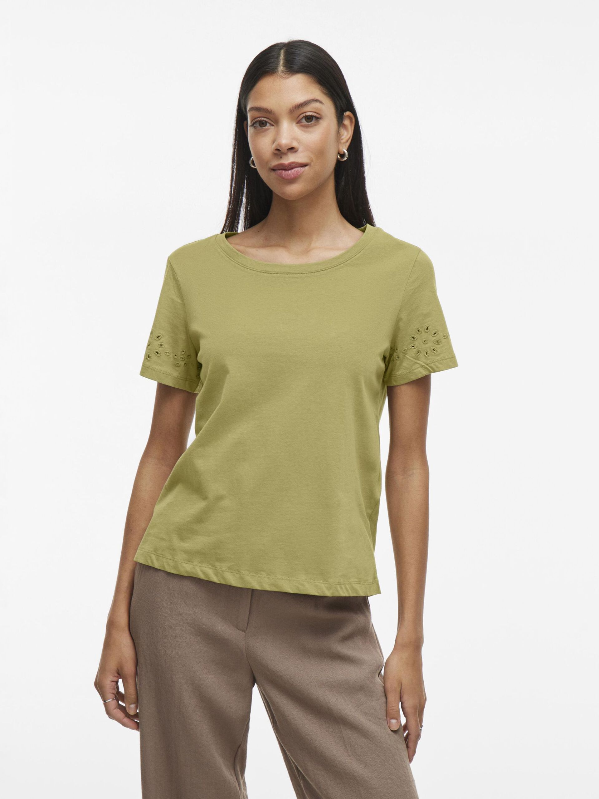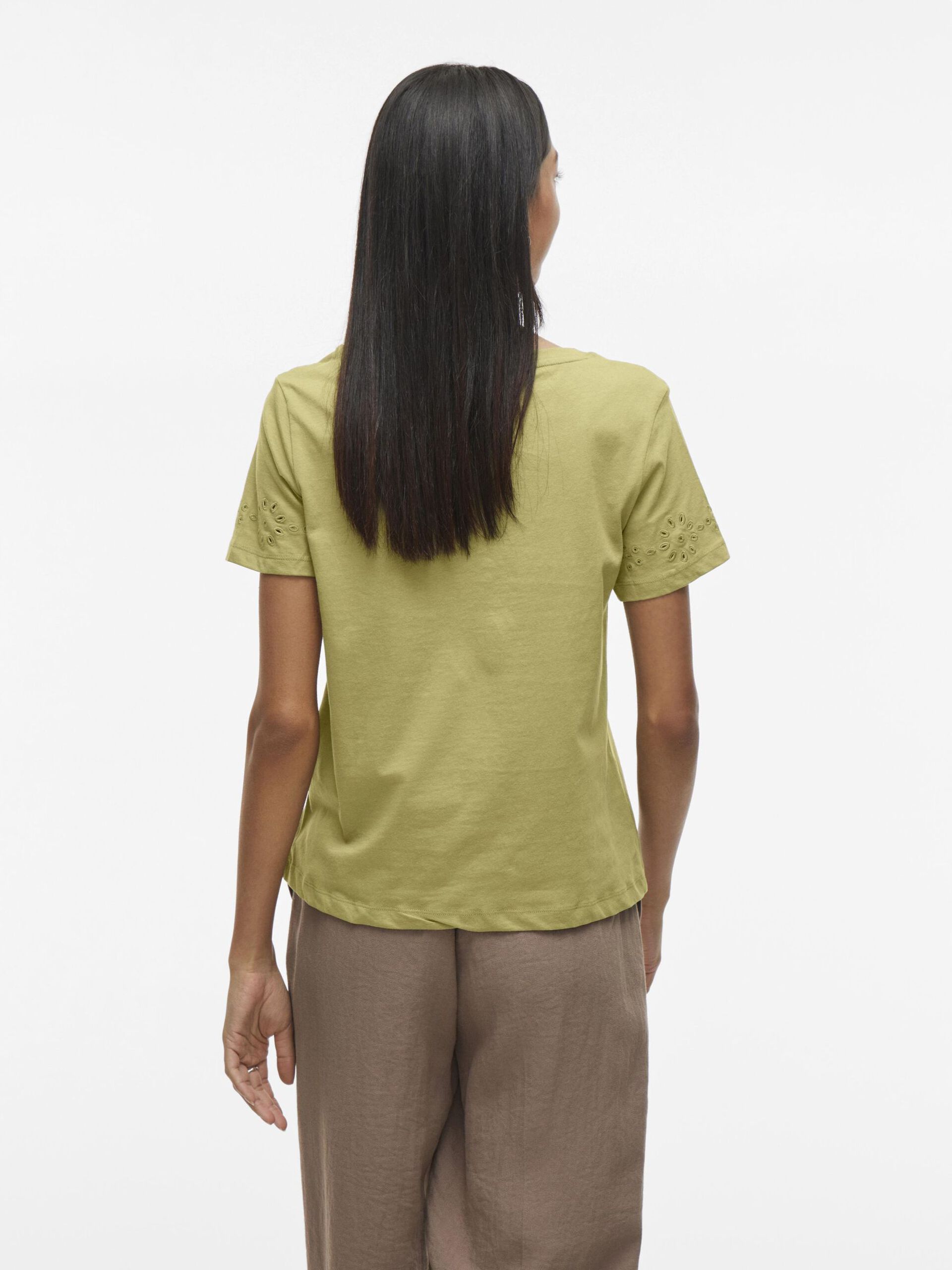 Viemira Open O-Neck Top fra Vila er en tidløs og feminin topp med gjennomtenkte detaljer. Den har korte ermer med delikate detaljer, en klassisk rund hals og en normal passform som gjør den både komfortabel og enkel å style. Med en lengde på 62 cm i størrelse M, er den perfekt til både jeans, skjørt og dressbukser.