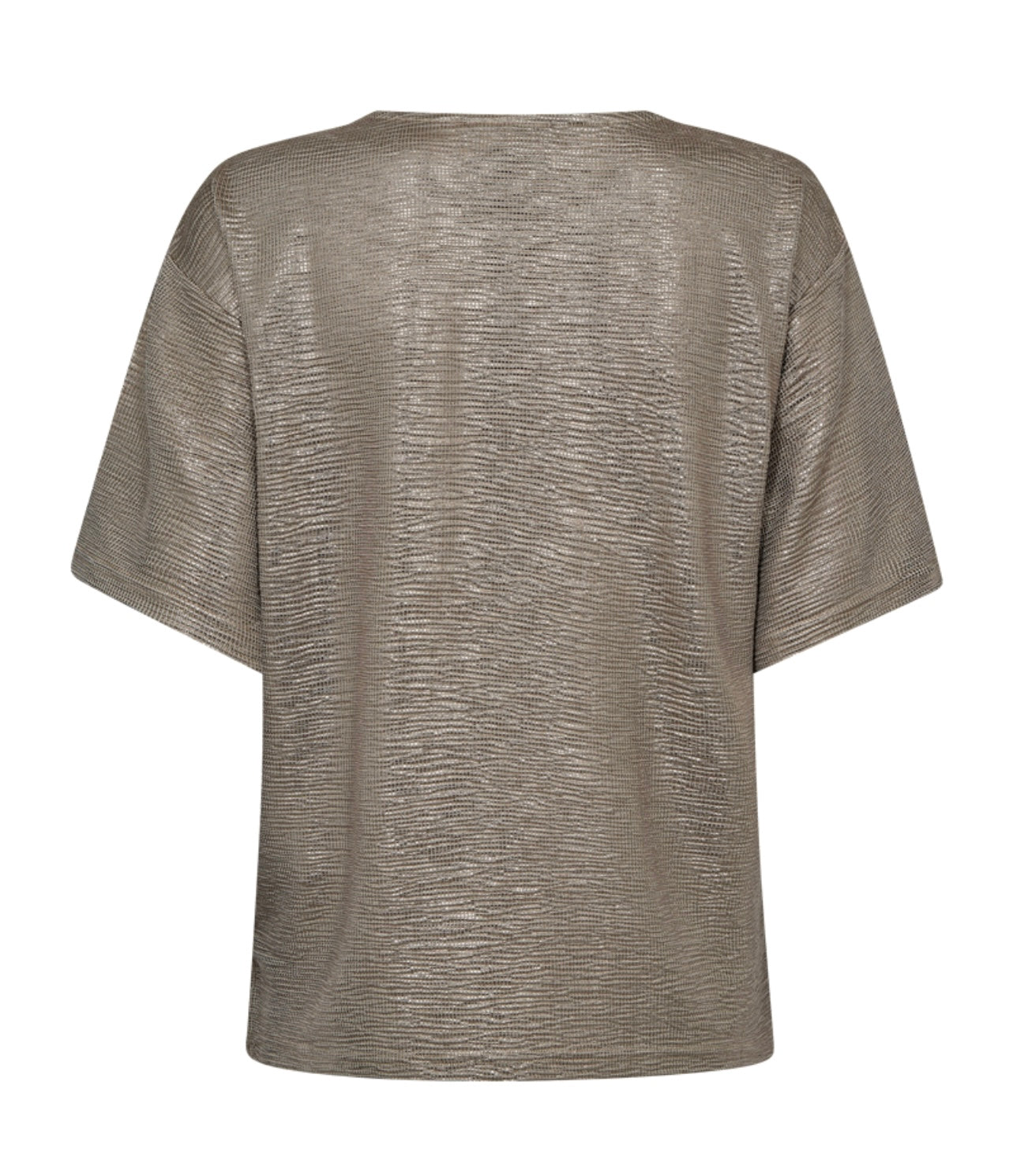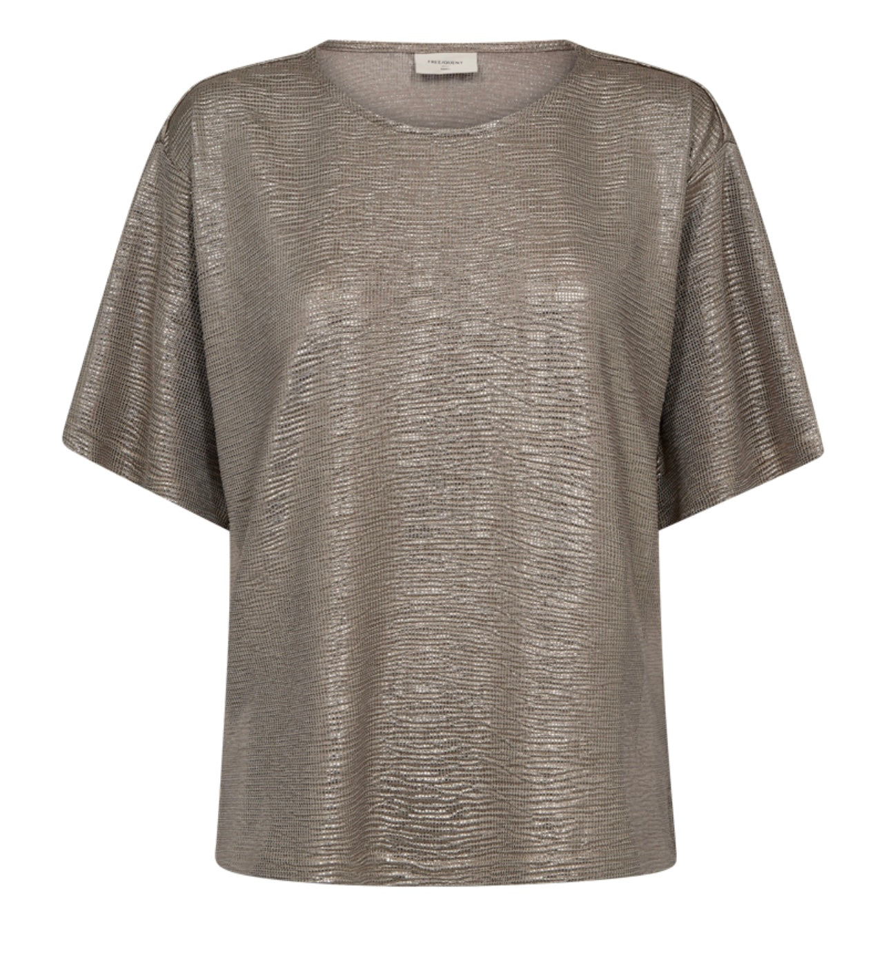 Satina-Tee fra Freequent er en stilren og feminin t-skjorte med en glansfull finish som gir den et sofistikert uttrykk. Den har en avslappet passform, rund hals og korte ermer, og er laget i et lett og behagelig stoff som faller flatterende på kroppen.