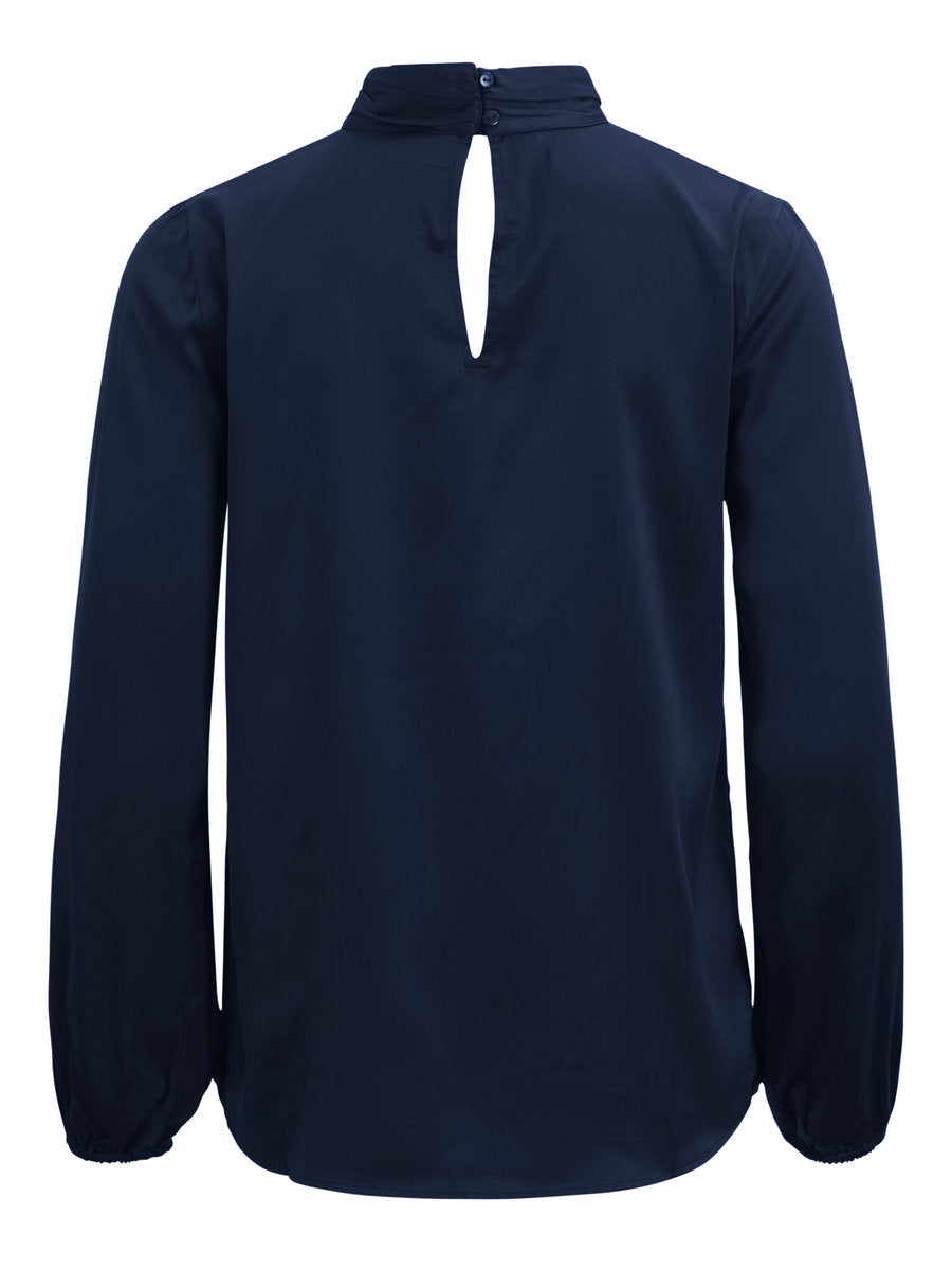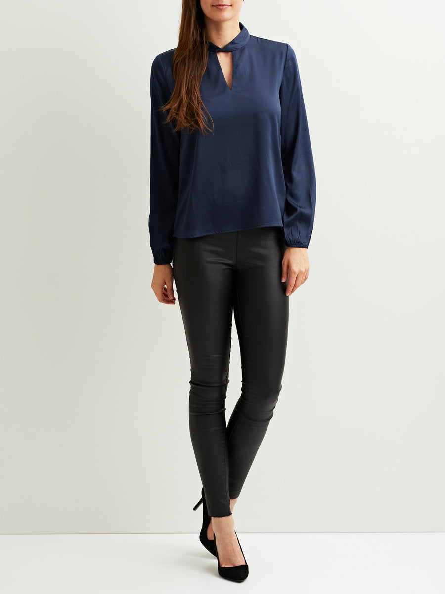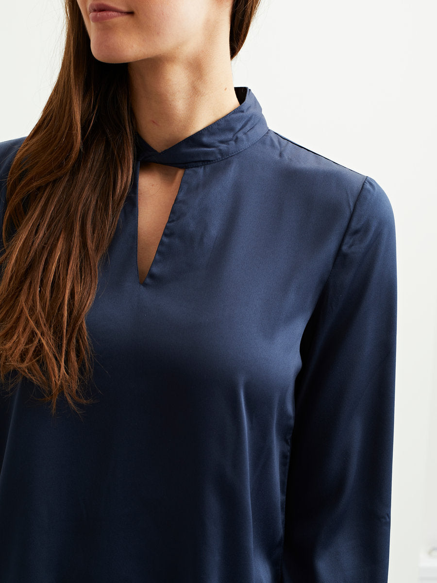 Blusen har kjempe fin satenglook, høy hals med en lekker utskjæring fremme.