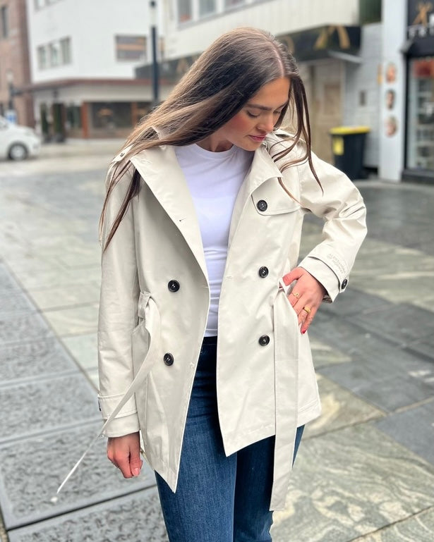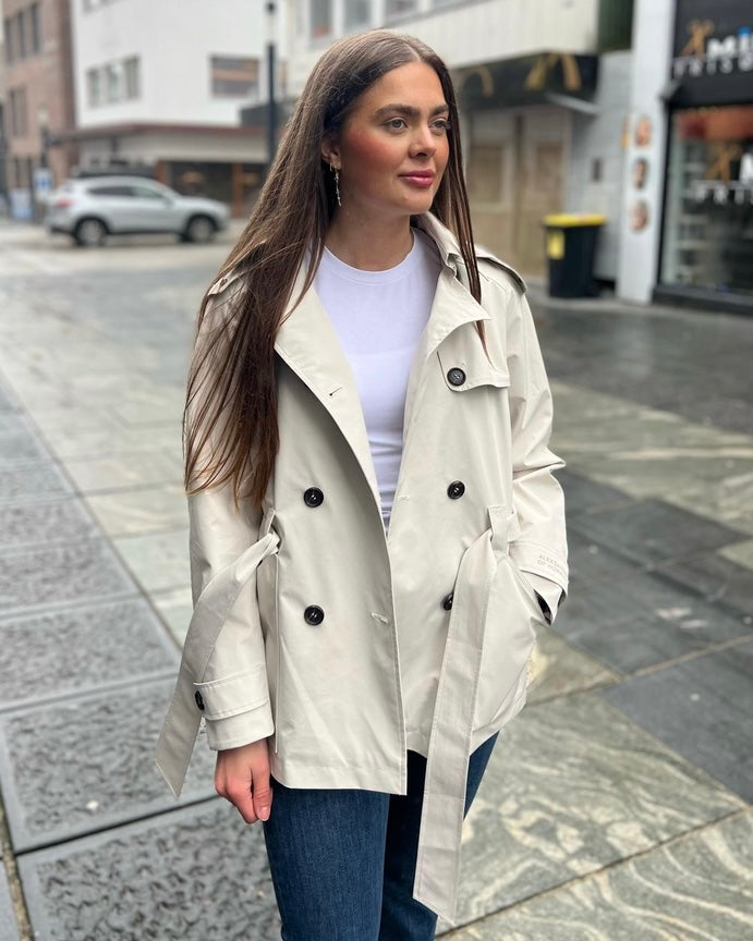 Stilren kort trenchcoat fra norske Aleksander of Norway.