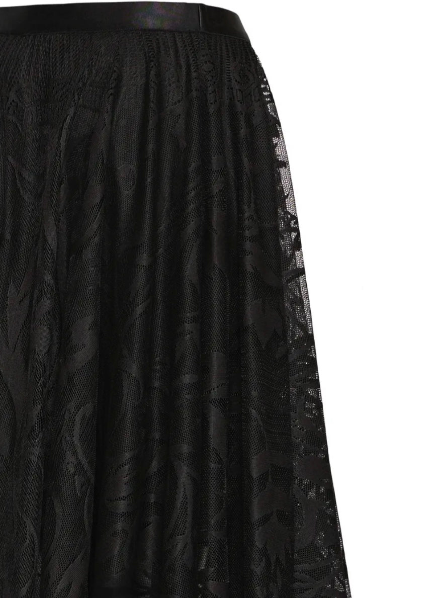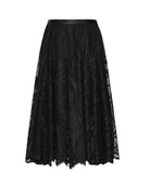 Lacia Skirt fra Fransa er et midi-langt skjørt med et elegant, lett transparent ytterlag dekorert med et diskret mønster. Skjørtet har en behagelig strikk i livet og en løs, flytende fasong som gir det et feminint og sofistikert uttrykk. Det er fôret under, slik at det er komfortabelt i bruk, samtidig som det ytre stoffet gir et lett og luftig fall. Like fint til hverdags med en strikkegenser som til fest med en pen bluse.