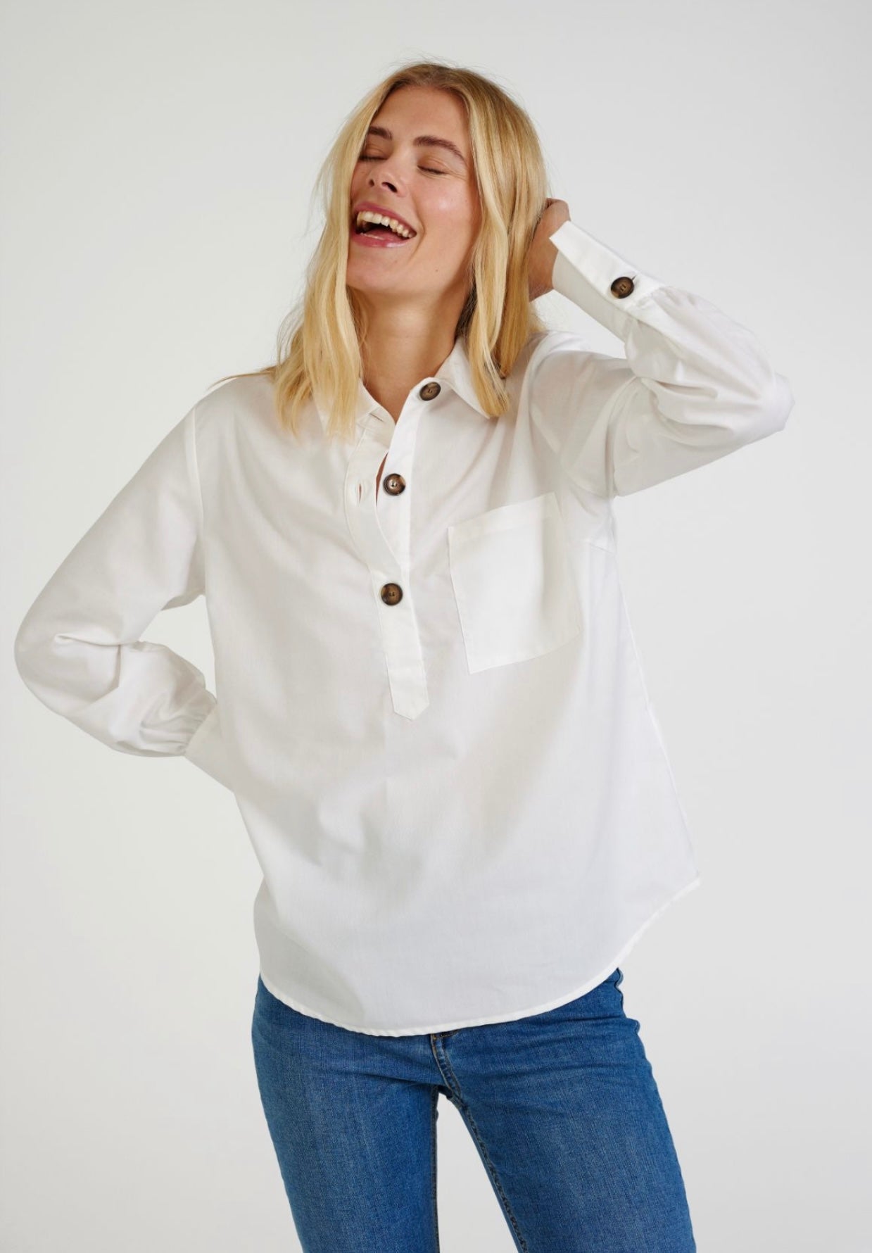 Flynn Shirt fra Freequent er en klassisk og tidløs skjorte med et moderne preg. Skjorten kommer i en lekker chambray-blå farge som enkelt kan styles til ulike anledninger. Den har en avslappet passform, pene knappedetaljer og mykt materiale som gir en behagelig følelse gjennom hele dagen.