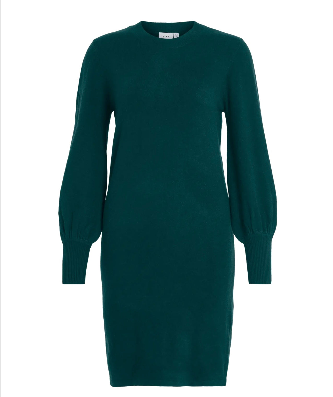 Perfekt kort strikkekjole med lange ermer og ribbekanter. Myk og stretchy.