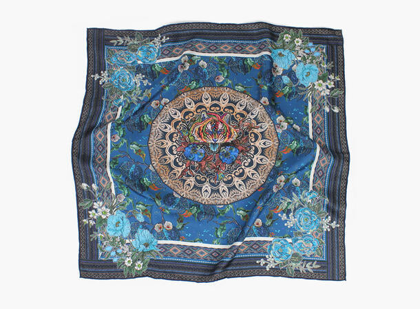Eksklusivt silkeskjerf med håndsydd rulle-søm.