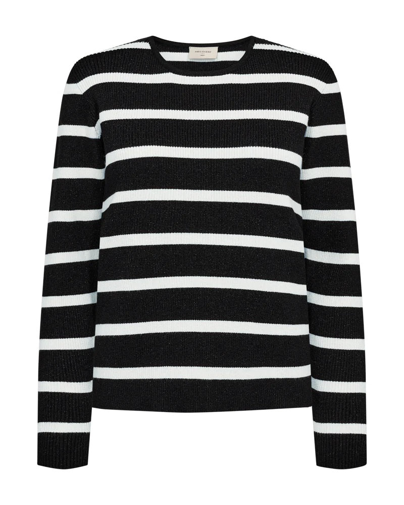 Arna Pullover fra Freequent er en klassisk stripet genser med et tidløst og maritimt preg. Den har rund hals, lange ermer og en komfortabel passform som gjør den enkel å bruke både til hverdags og på jobb.