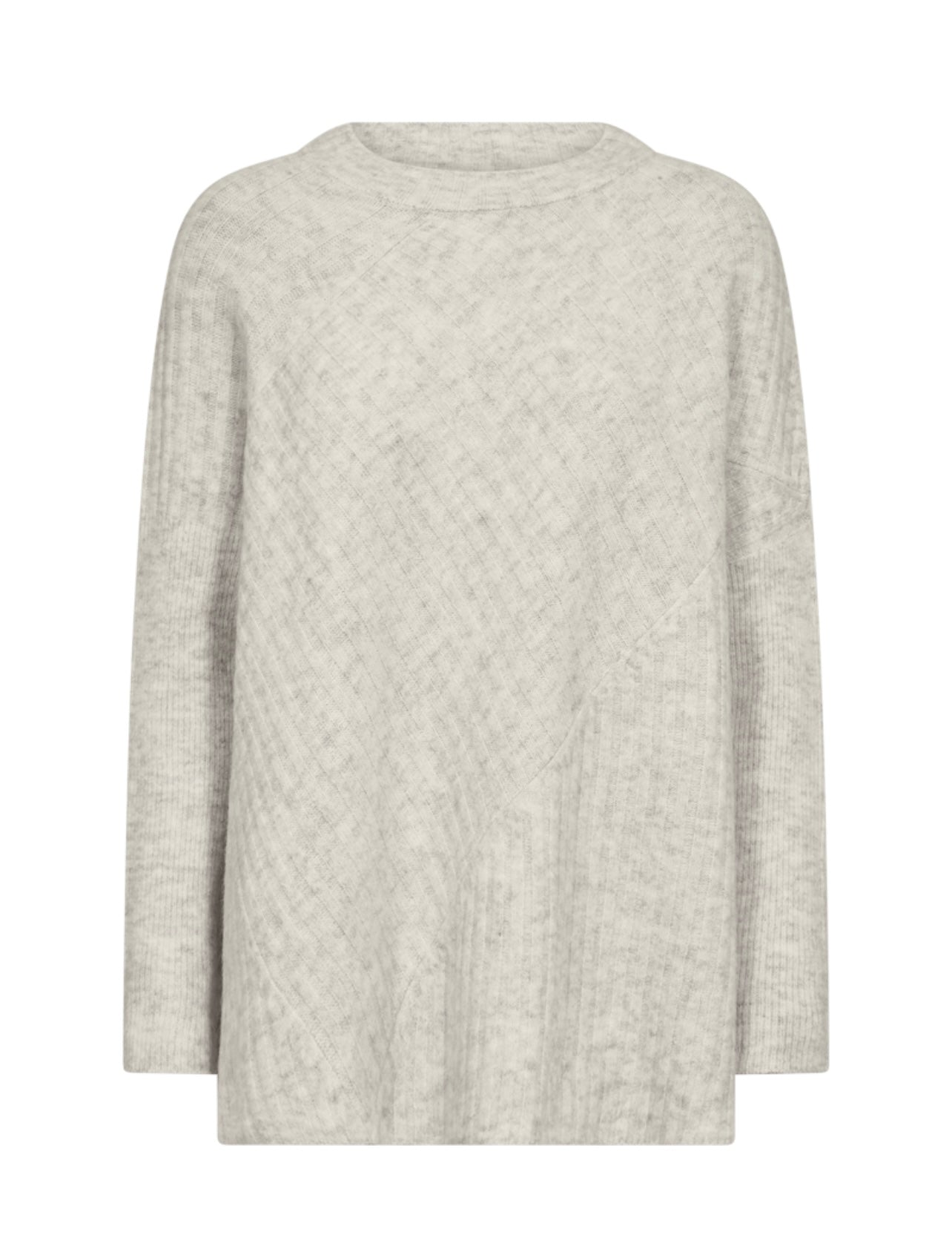 Giza Pullover fra Freequent er en genser i ribbestrikket kvalitet med et asymmetrisk snitt. Genseren er enkel i modellen med smale, lange ermer, rund hals og med en elegant løs passform.