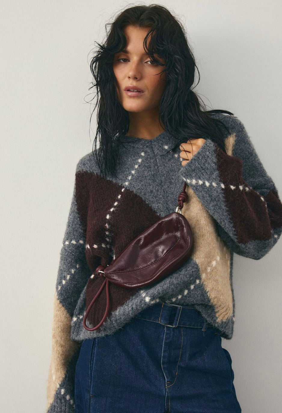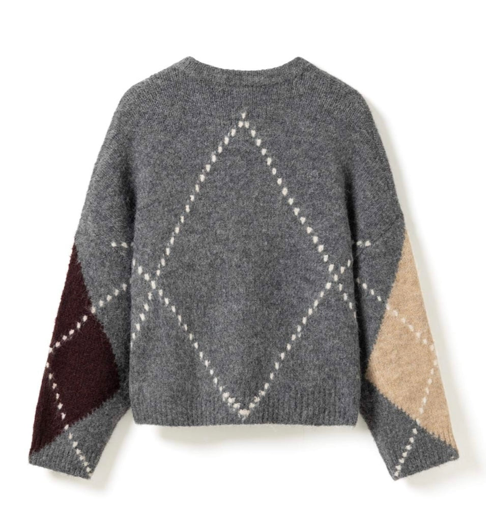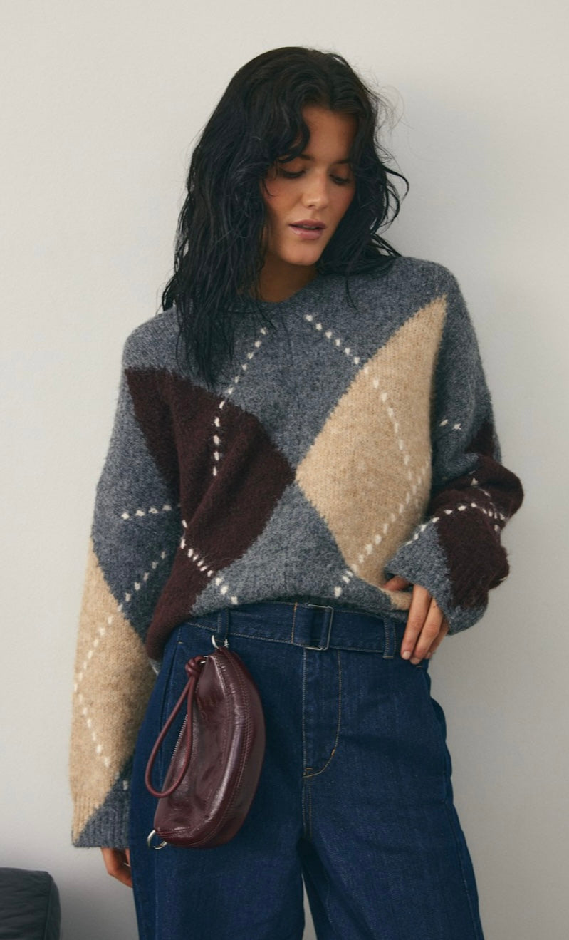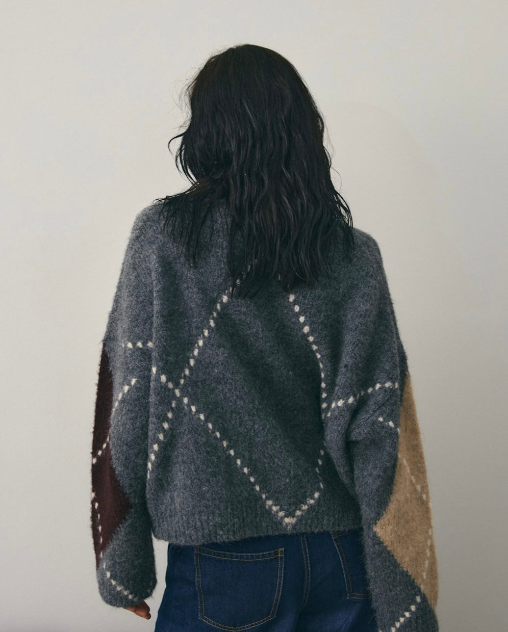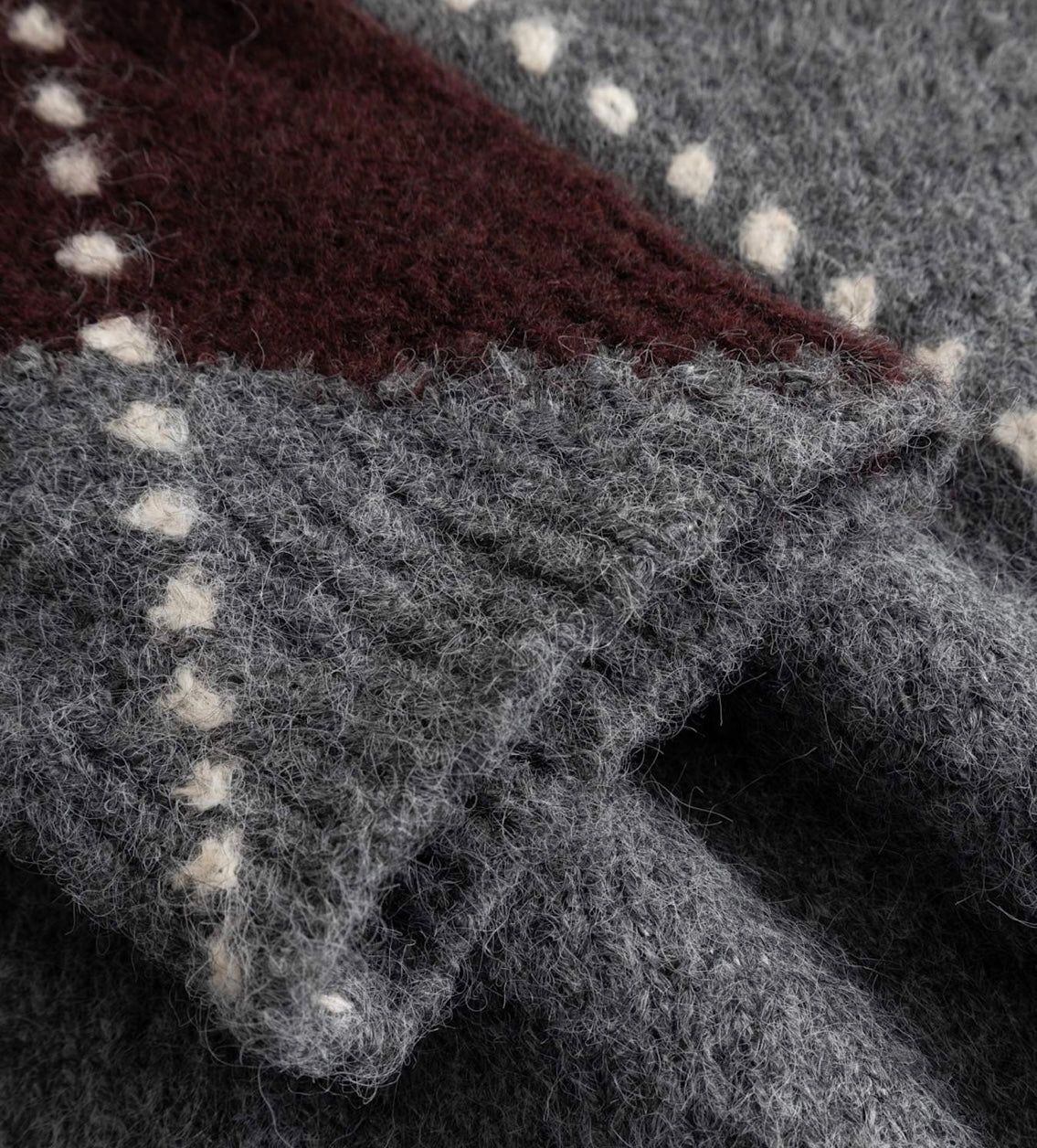 Designet preges av store kontrastfelt i grått, beige og mørke toner, satt sammen i et tidløst argyle-inspirert mønster. Dette gjør Lai Knit til et perfekt plagg for deg som ønsker å skille deg ut – uten å gå på kompromiss med komfort.