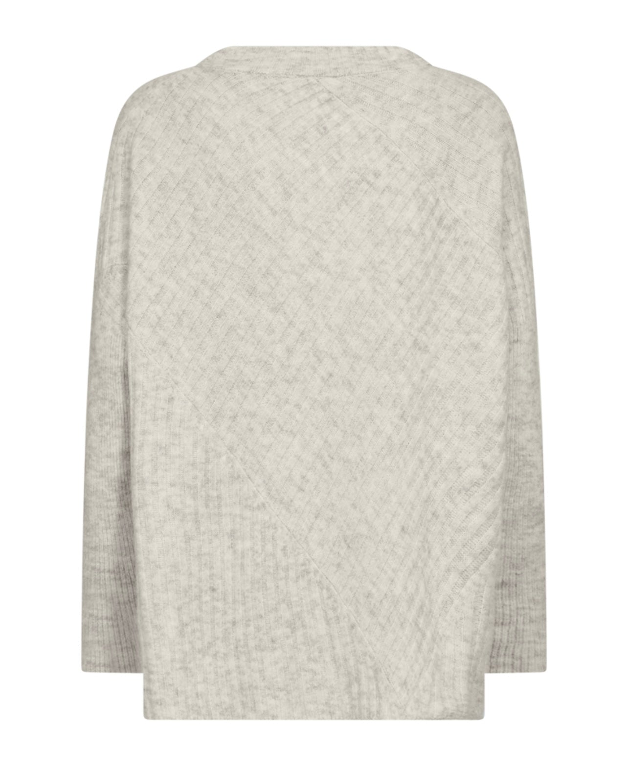 Giza Pullover fra Freequent er en genser i ribbestrikket kvalitet med et asymmetrisk snitt. Genseren er enkel i modellen med smale, lange ermer, rund hals og med en elegant løs passform.