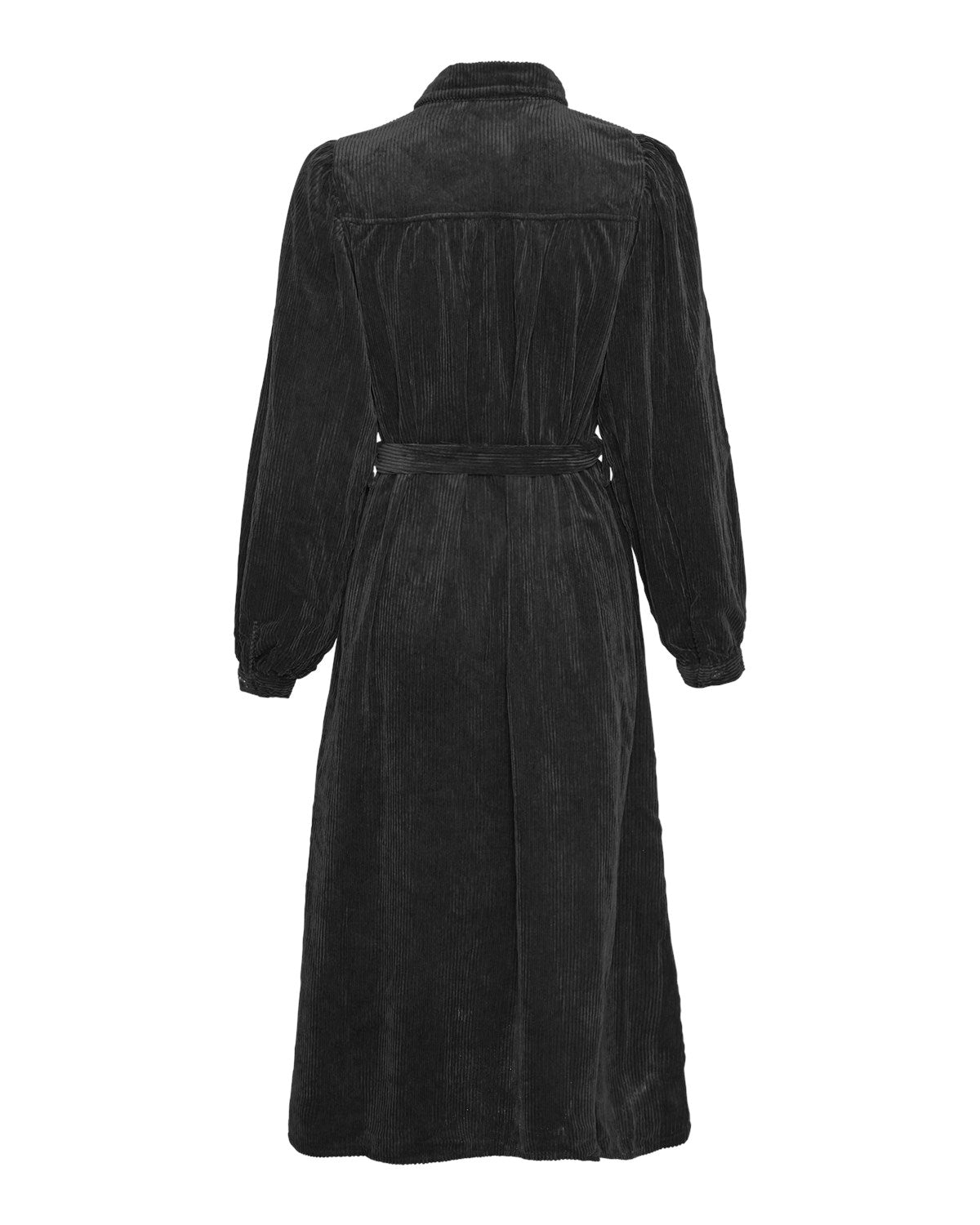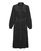 Ilivia er en cord fløyel midikjole fra fra Moss Copenhagen. Kjolen lukkes med knapper i front, har lommer i sidene og belte.