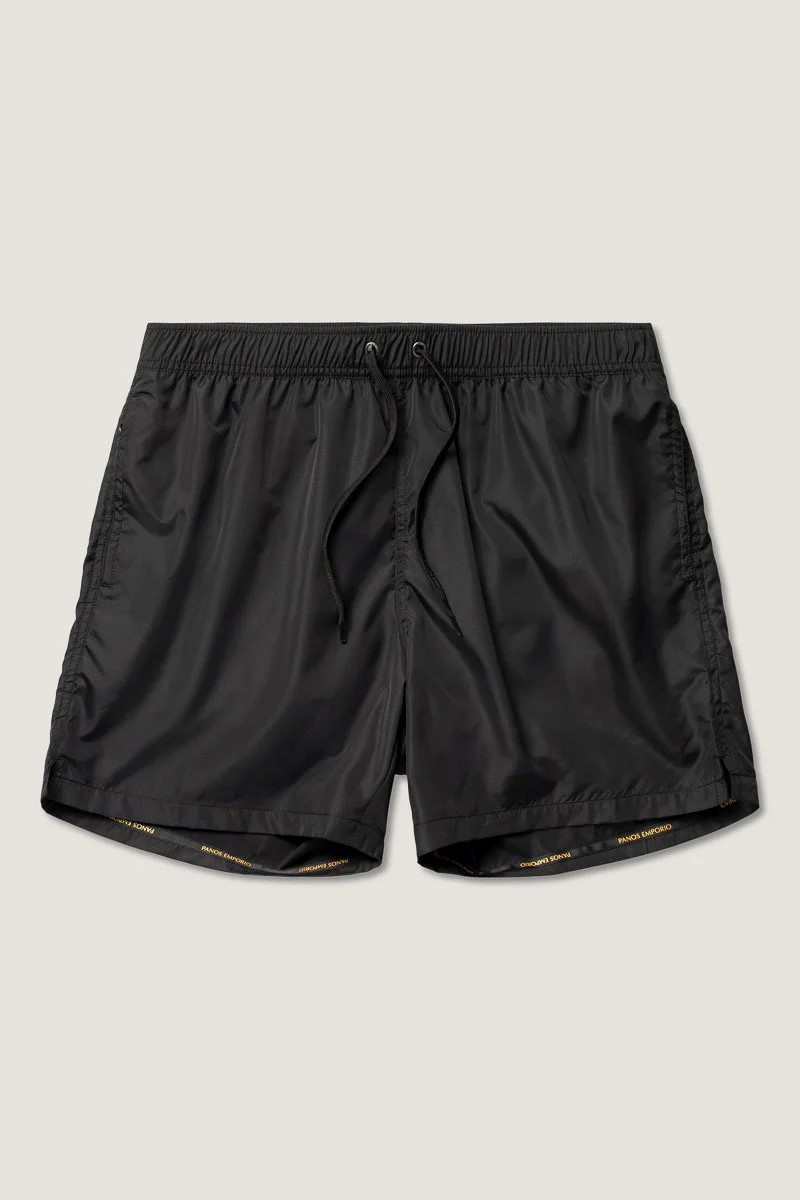 Luxe Swimshort Solid fra Panos Emporio er den perfekte badeshortsen for deg som ønsker både stil og komfort. Med en klassisk passform og laget av lett, luksuriøst stoff som tørker raskt, er denne shortsen ideell for varme sommerdager ved sjøen eller bassenget. Elastisk snøring i livet gir en justerbar passform, mens de diskrete logoene og lommene på hver side gir et sofistikert og praktisk uttrykk. Shortsen har en 12 cm lengde på innsiden av låret og er fôret med tynn, behagelig netting for ekstra komfort.
