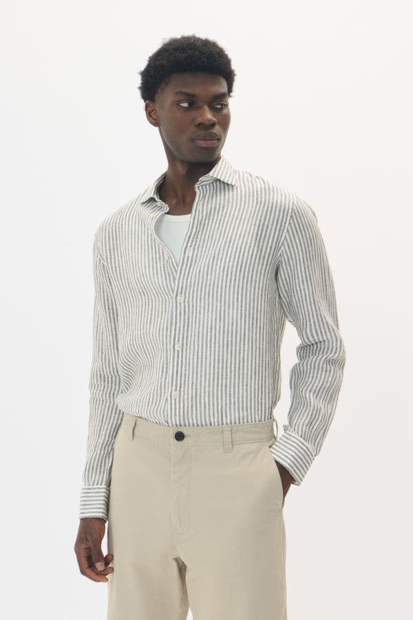 Skjorten har en regular fit og lange ermer, noe som gjør den allsidig for både hverdagsbruk og semi-formelle anledninger. Den freshe fargen gir et sofistikert preg til ethvert antrekk, og det lette lin-stoffet gir god komfort hele dagen.