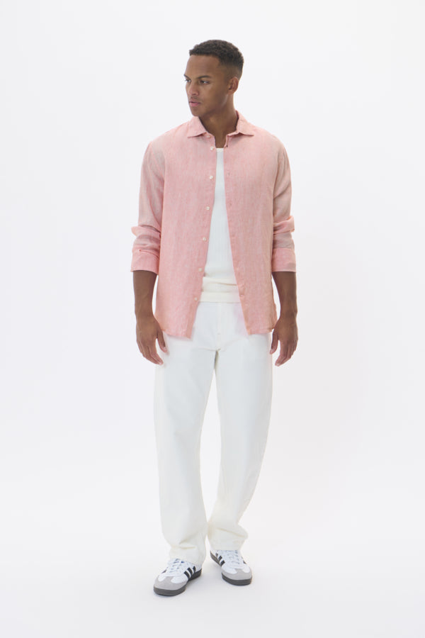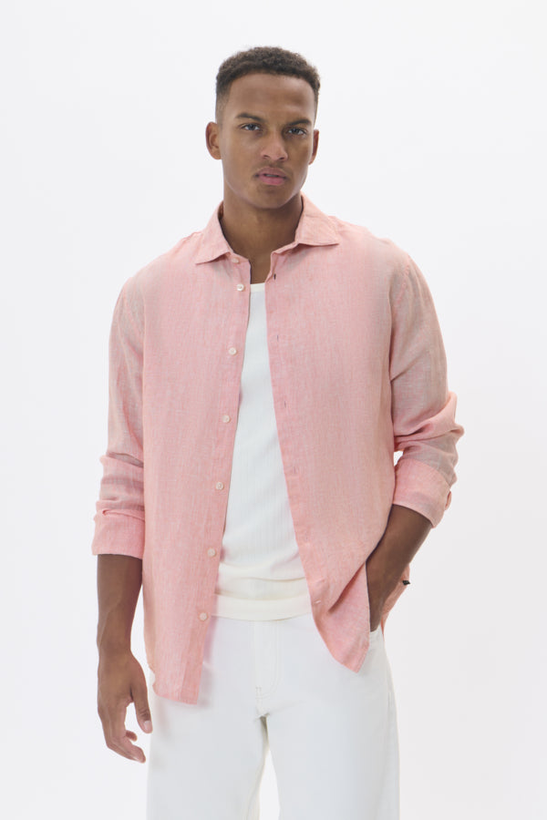 MAmarc Short Linen Shirt fra Matinique er et ideelt plagg for varmere dager, laget i 100 % lin som gir både pusteevne og komfort. Denne skjorten har en regular fit og lange ermer, og kommer i den lekre Geranium Pink-fargen, som tilfører et friskt og sofistikert preg til garderoben.