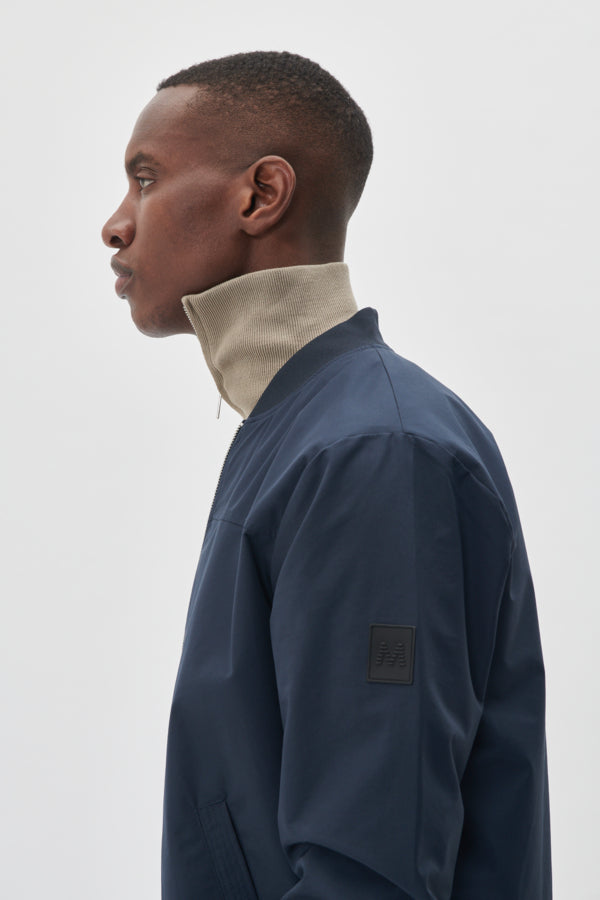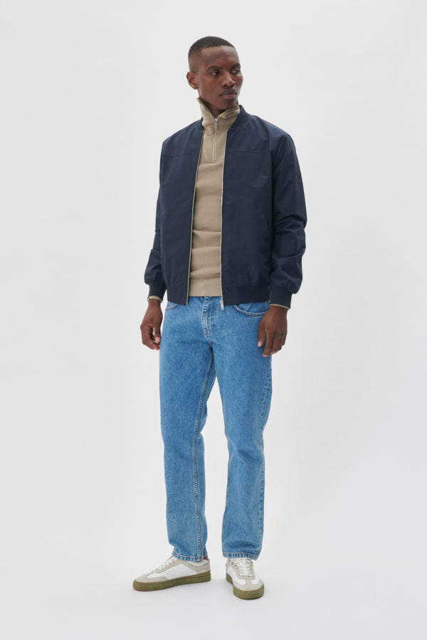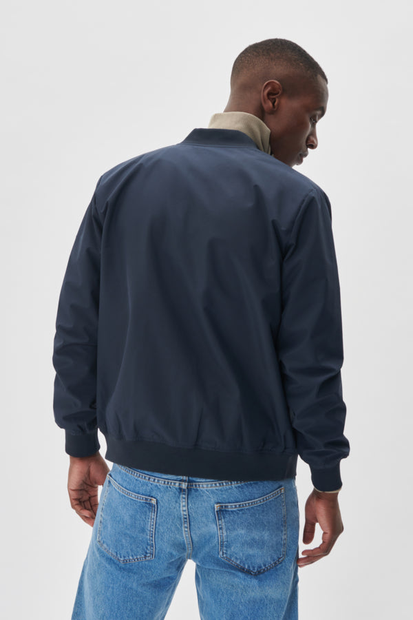 Maclay Bomber Jacket fra Matinique kombinerer klassisk stil med bærekraftige materialer. Denne jakken er laget i 100 % resirkulert polyester, både på utsiden og innsiden, og gir deg både en moderne og miljøvennlig jakke. Fargen mørk navy gir et sofistikert uttrykk, og den passer perfekt til både hverdagsbruk og mer avslappede anledninger.