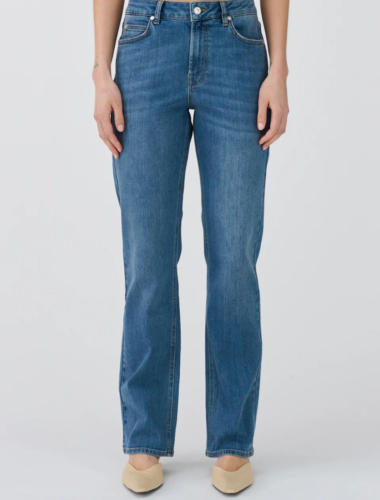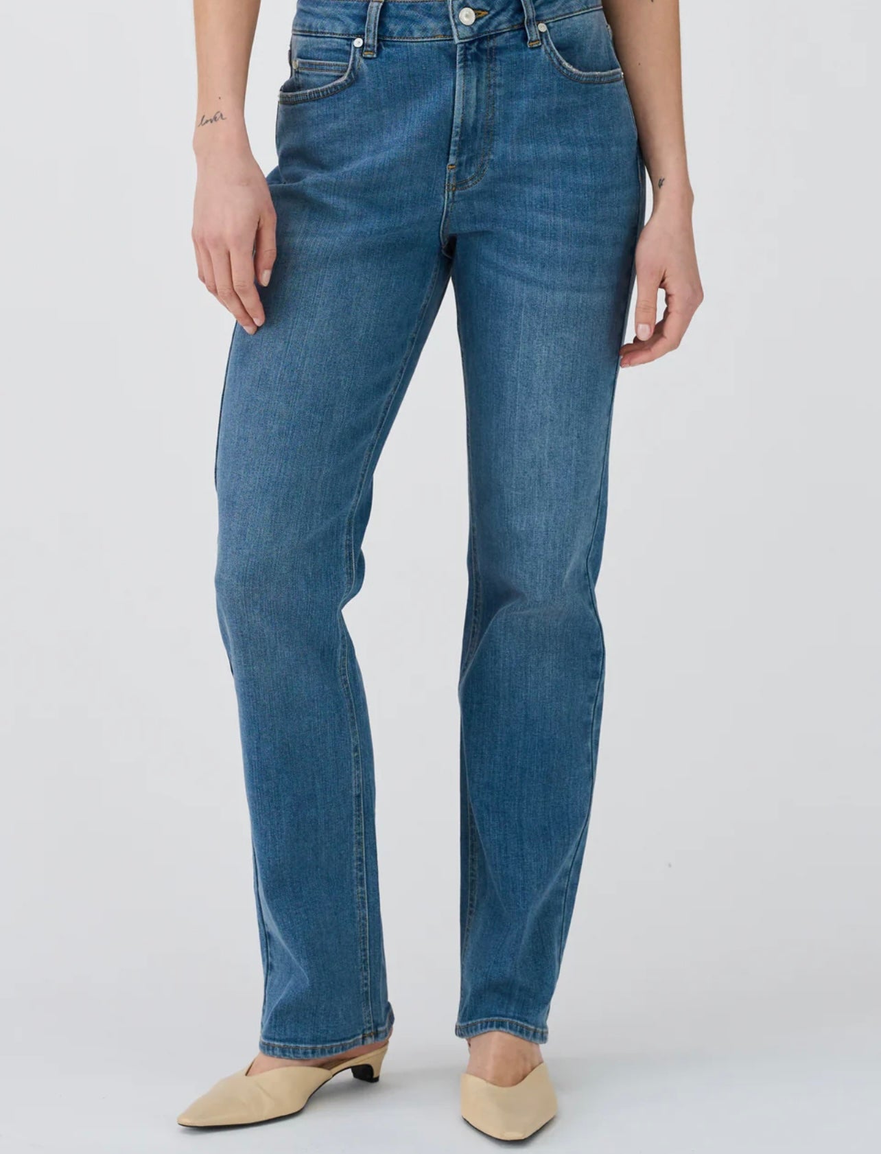 Super flatterende passform, som sitter pent over hoftene og har rette ben.
