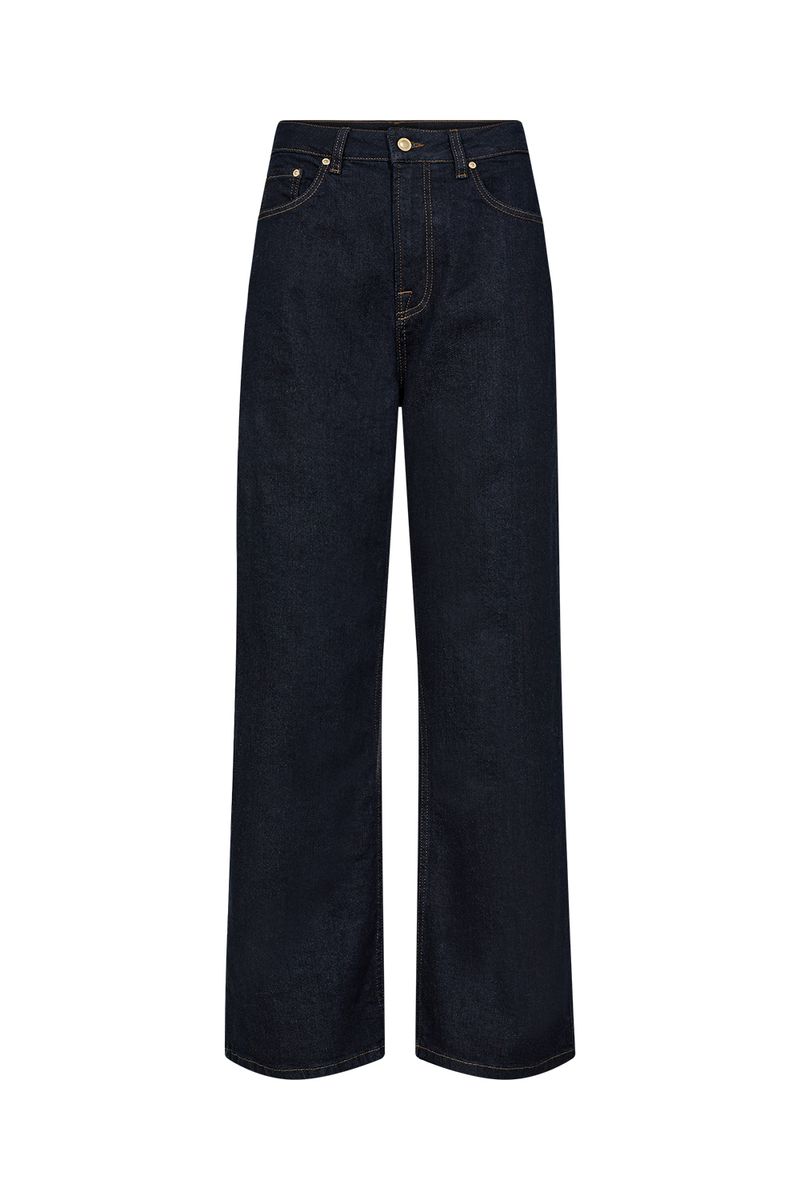 Mia har høyt liv, full lengde og vide rette ben. Klassisk 5 lommers modell.