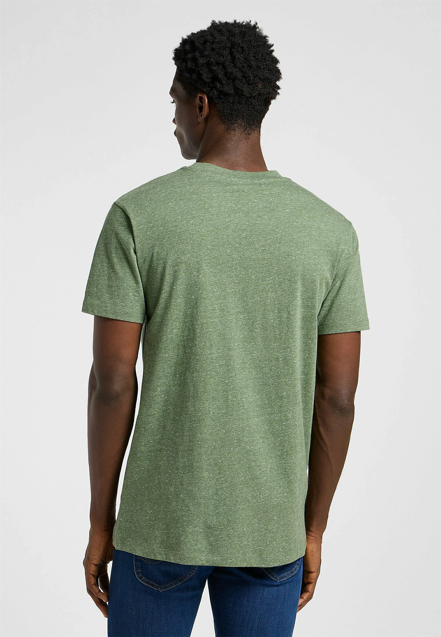 Laget av 100 % bomull, er stoffet mykt og behagelig mot huden, og den unike melange-effekten på den grønne fargen tilfører litt ekstra karakter til denne enkle, men stilige t-skjorten. En perfekt t-skjorte å ha i garderoben for hverdagsbruk – både alene eller som et lag under en jakke.