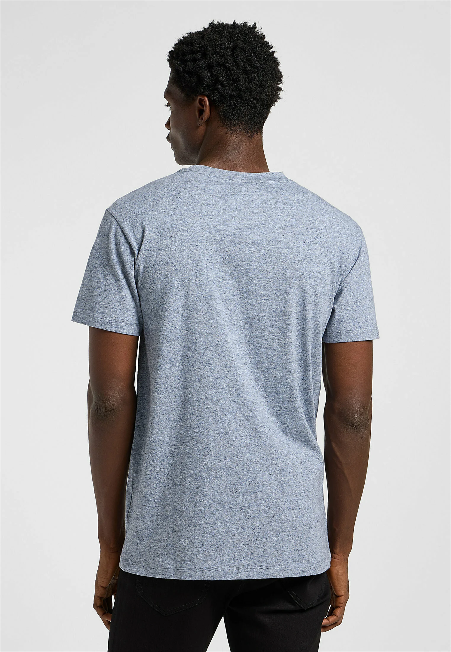 Laget av 100 % bomull, er stoffet mykt og behagelig mot huden, og den unike melange-effekten på den lys blå fargen tilfører litt ekstra karakter til denne enkle, men stilige t-skjorten. En perfekt t-skjorte å ha i garderoben for hverdagsbruk – både alene eller som et lag under en jakke.