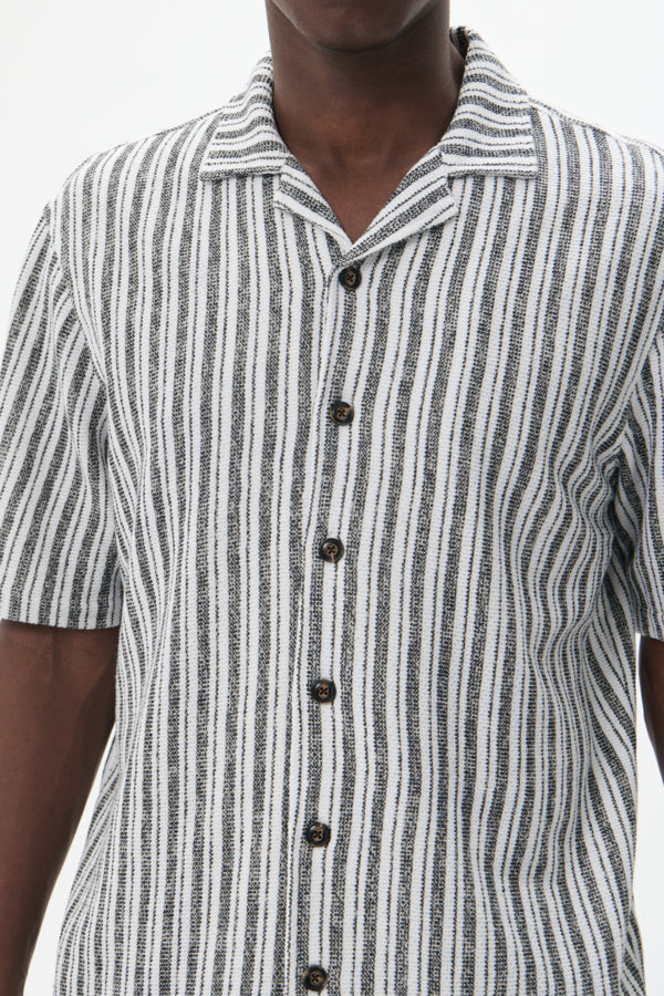 Maklampo Shirt er en moderne og uanstrengt skjorte fra Matinique, designet for å gi et sofistikert, men avslappet uttrykk. Den har en tidløs bowlingkrage og er laget i et lett og pustende stoff, som gjør den perfekt for sommerens varme dager. Med sitt stripete mønster i mørkeblått og en løs passform, tilbyr denne skjorten både komfort og stil i ett.