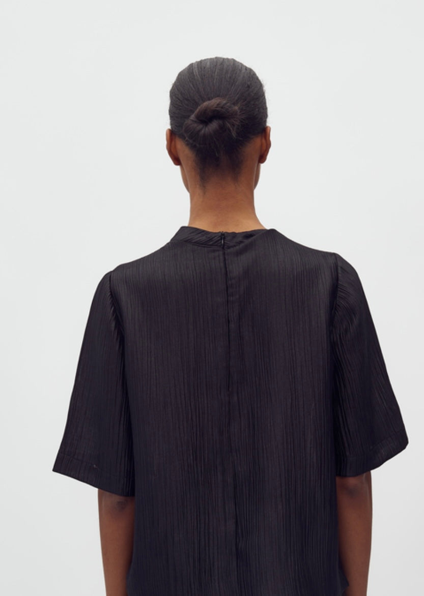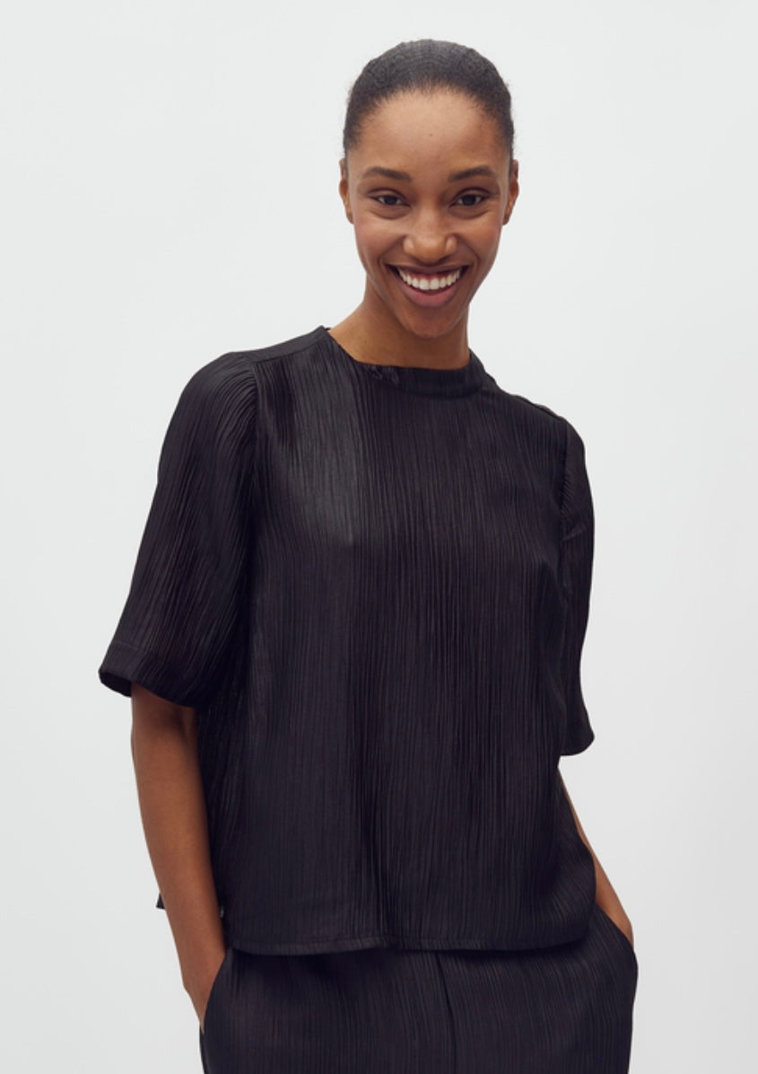 Samia blusen fra MbyM er en stilren og elegant topp. Den har korte ermer, lukkes med glidelås bak, en løs passform og et minimalistisk utrrykk som gjør den både komfortabel og enkel å style. Kan enket styles til både hverdag og fetsligheter.