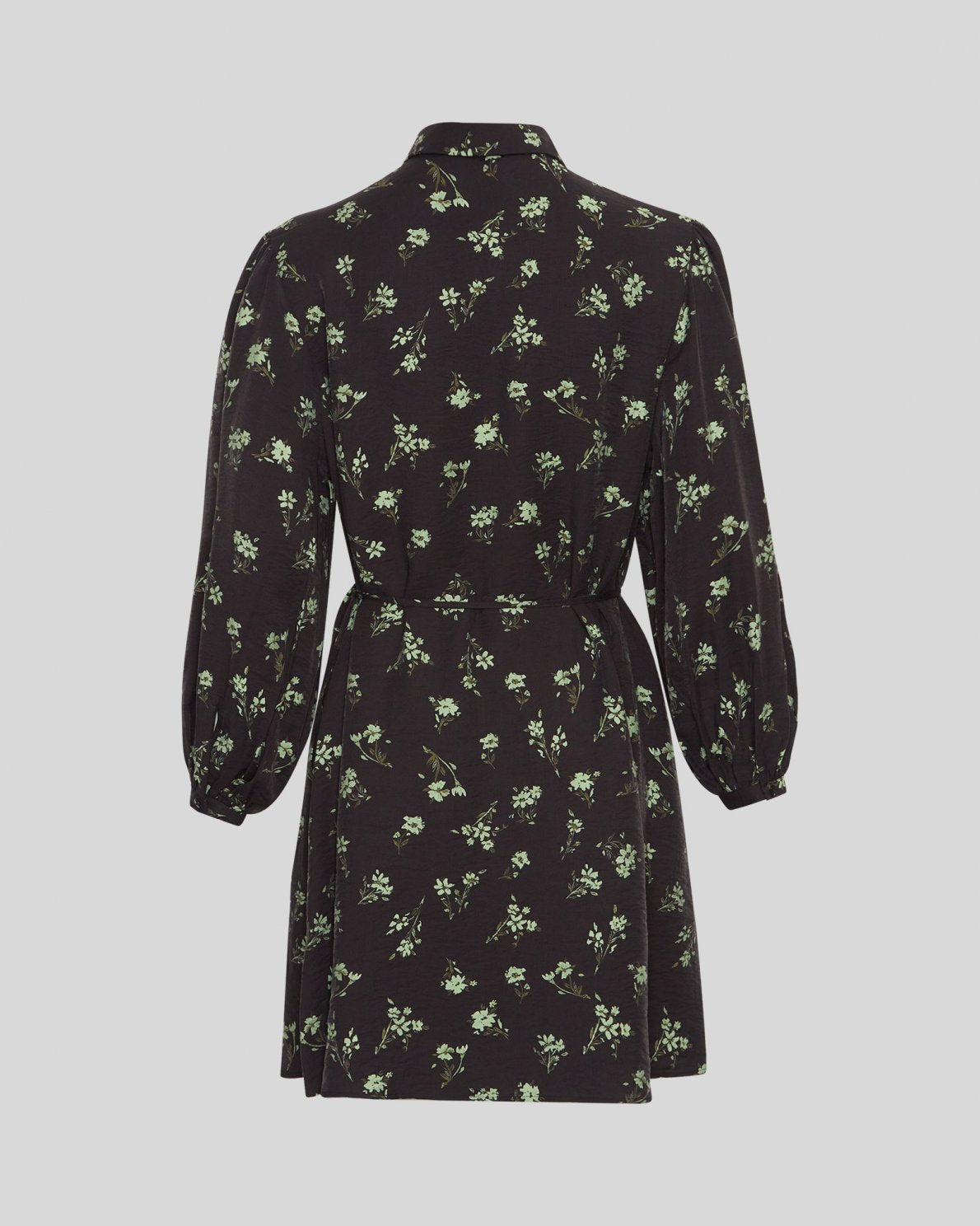 Det delikate printet i sarte grønne toner på en sort base gir kjolen et sofistikert uttrykk som passer til både hverdag og fest. Laget av bærekraftig LENZING™ ECOVERO™ viskose, føles stoffet lett og behagelig mot huden.