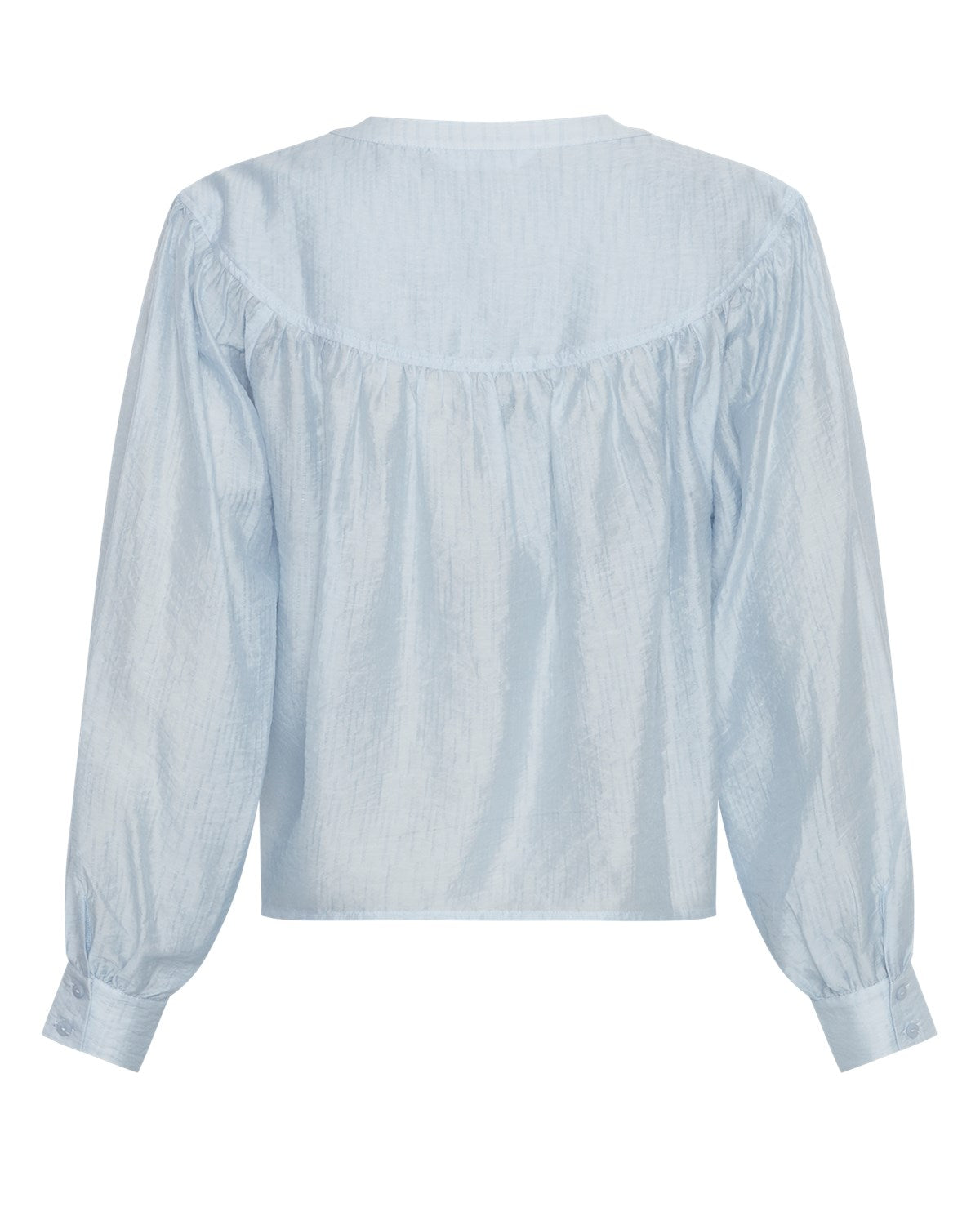 Bean Shirt fra MSCH Copenhagen er en vakker, feminin skjorte i en sart babyblå nyanse som tilfører et mykt og delikat preg til garderoben. Skjorten har en løs passform og er laget av 80 % TENCEL™ Lyocell og 20 % polyamid, noe som gir en lett og pustende følelse mot huden.