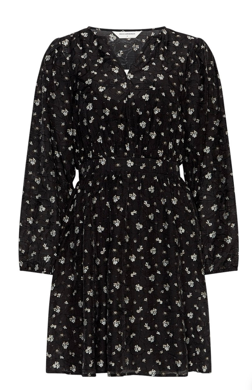 Kjole fra Moss Copenhagen i et nydelig søtt print. Lange ermer og innsvingt midje. Bluse i samme print er også tilgjengelig.