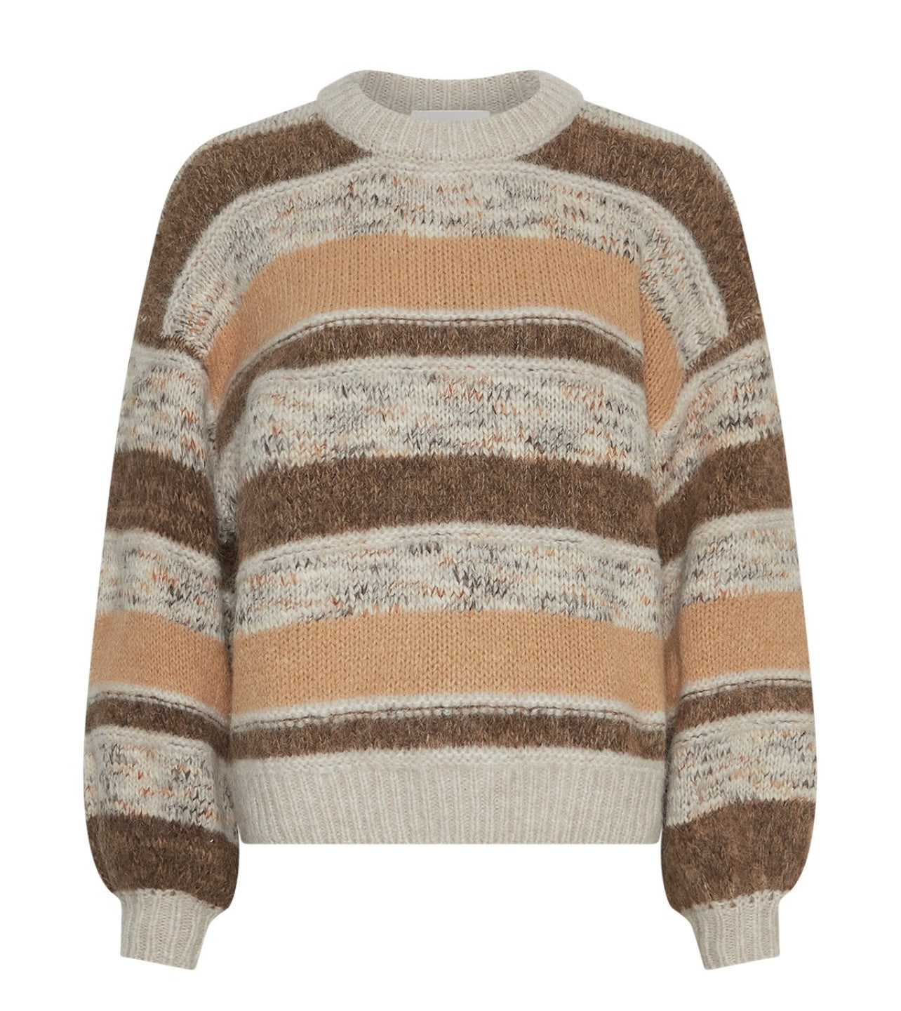 Constance Pullover har en boxy passform med rund hals og lange ermer. Genseren har et fint stripete design i jordtoner som gjør den enkel å style.