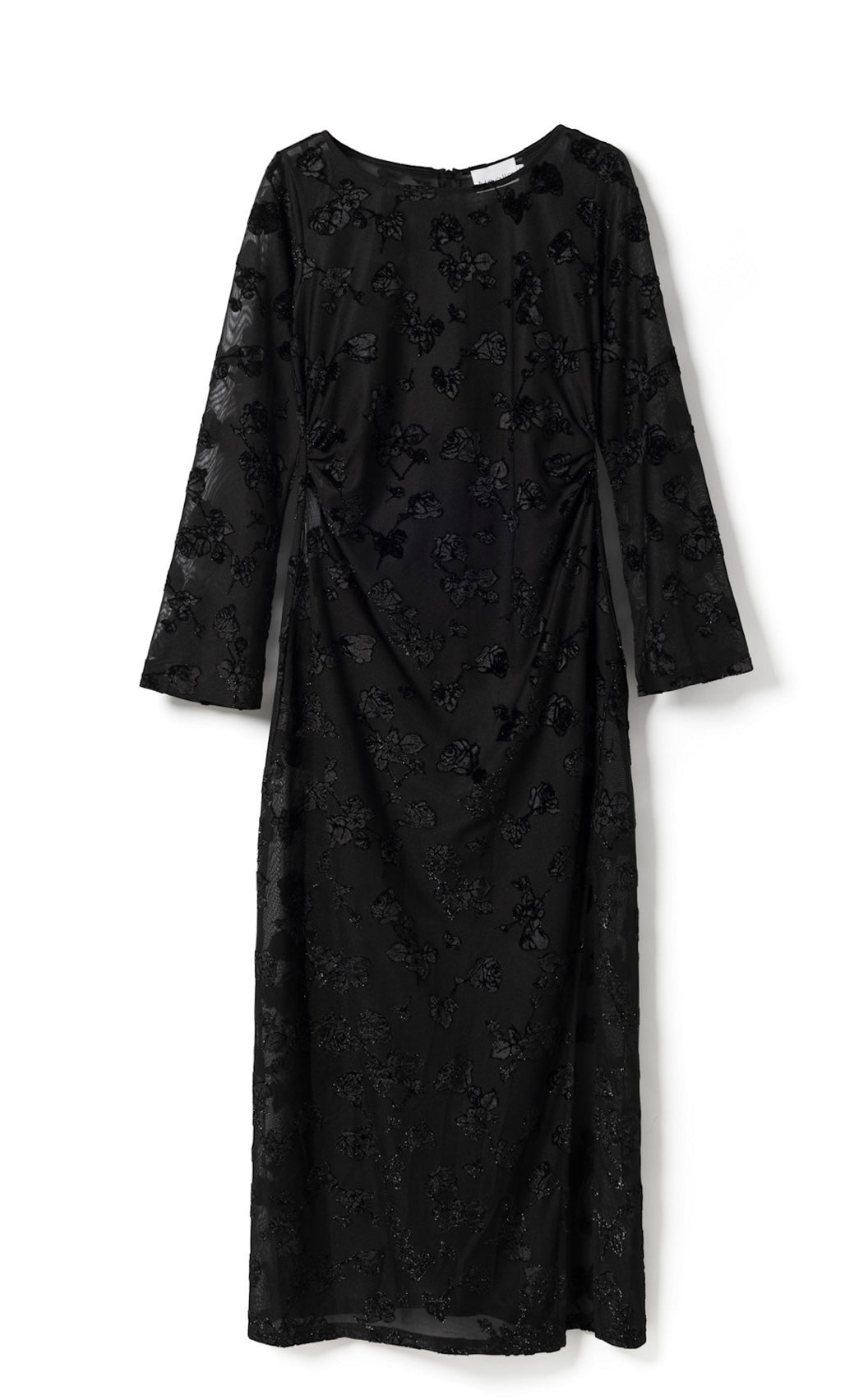 Laurette Dress fra Noella er en elegant og sofistikert kjole som passer perfekt til både festlige anledninger og kvelder du vil føle deg ekstra velkledd. Kjolen har en kroppsnær passform som fremhever silhuetten, lange ermer og en høy hals som balanserer det stilrene uttrykket. En feminin splitt i siden gir kjolen et moderne og flatterende preg. Den klassiske svarte fargen gjør den tidløs og enkel å style.
