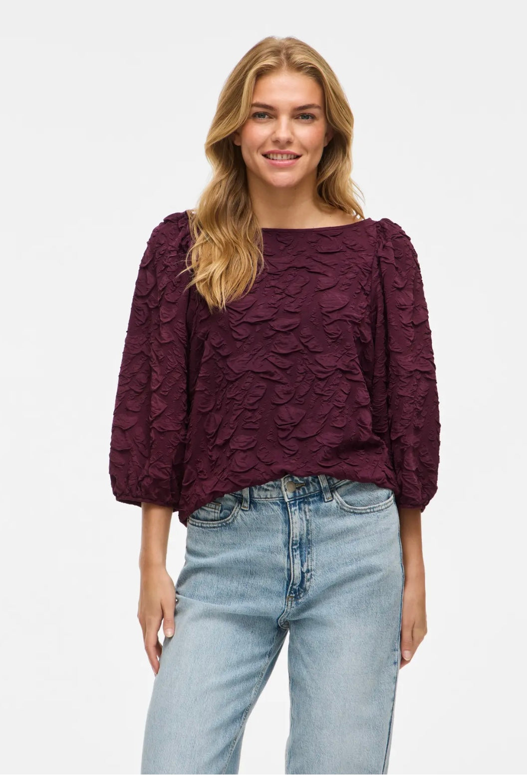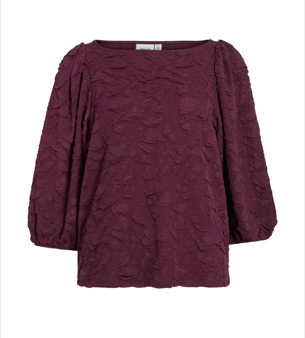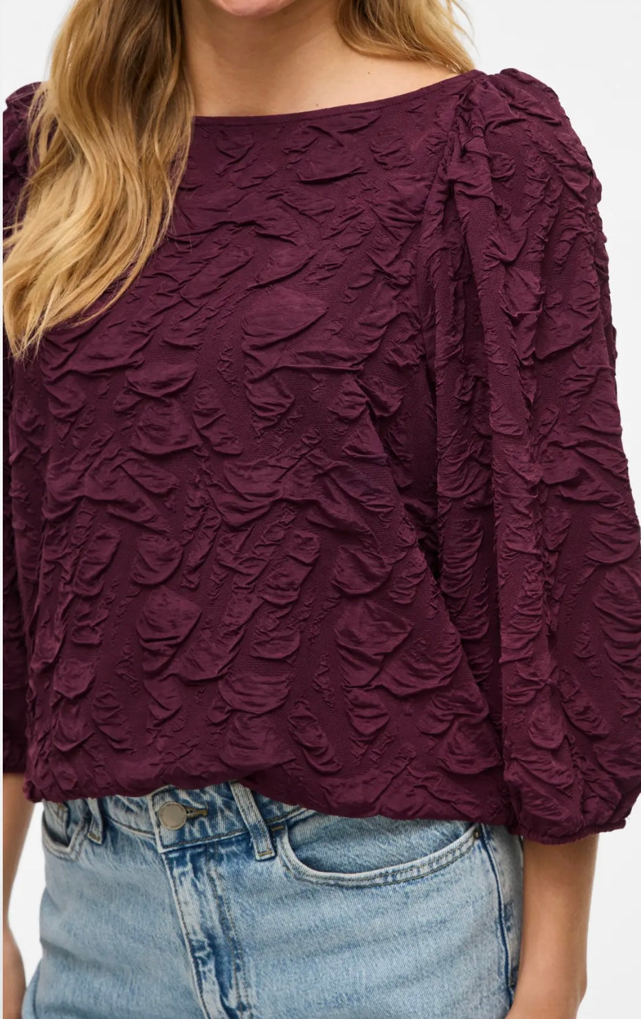 Enkel men stilren bluse fra Vila. Vide ermer, og strikk i enden på armene for en "ballong" look.
