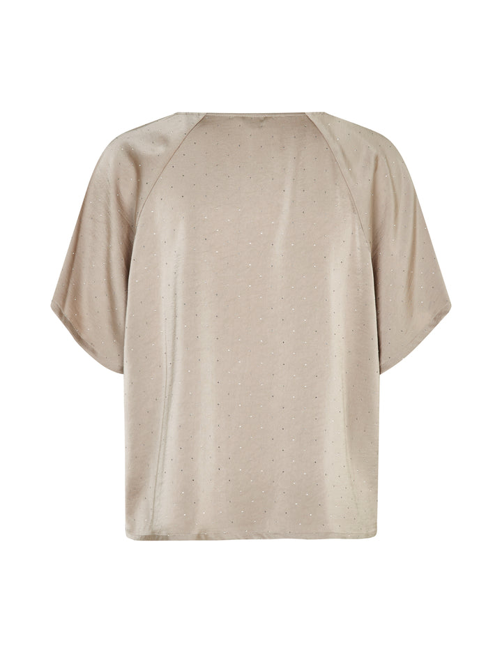 Den lyse sandfargen gir et sofistikert preg og gjør toppen perfekt både alene og som del av et sett med det matchende skjørtet fra MbyM. Bruk den til jobb, hverdags eller pynt opp med smykker og hæler for en mer festlig look.
