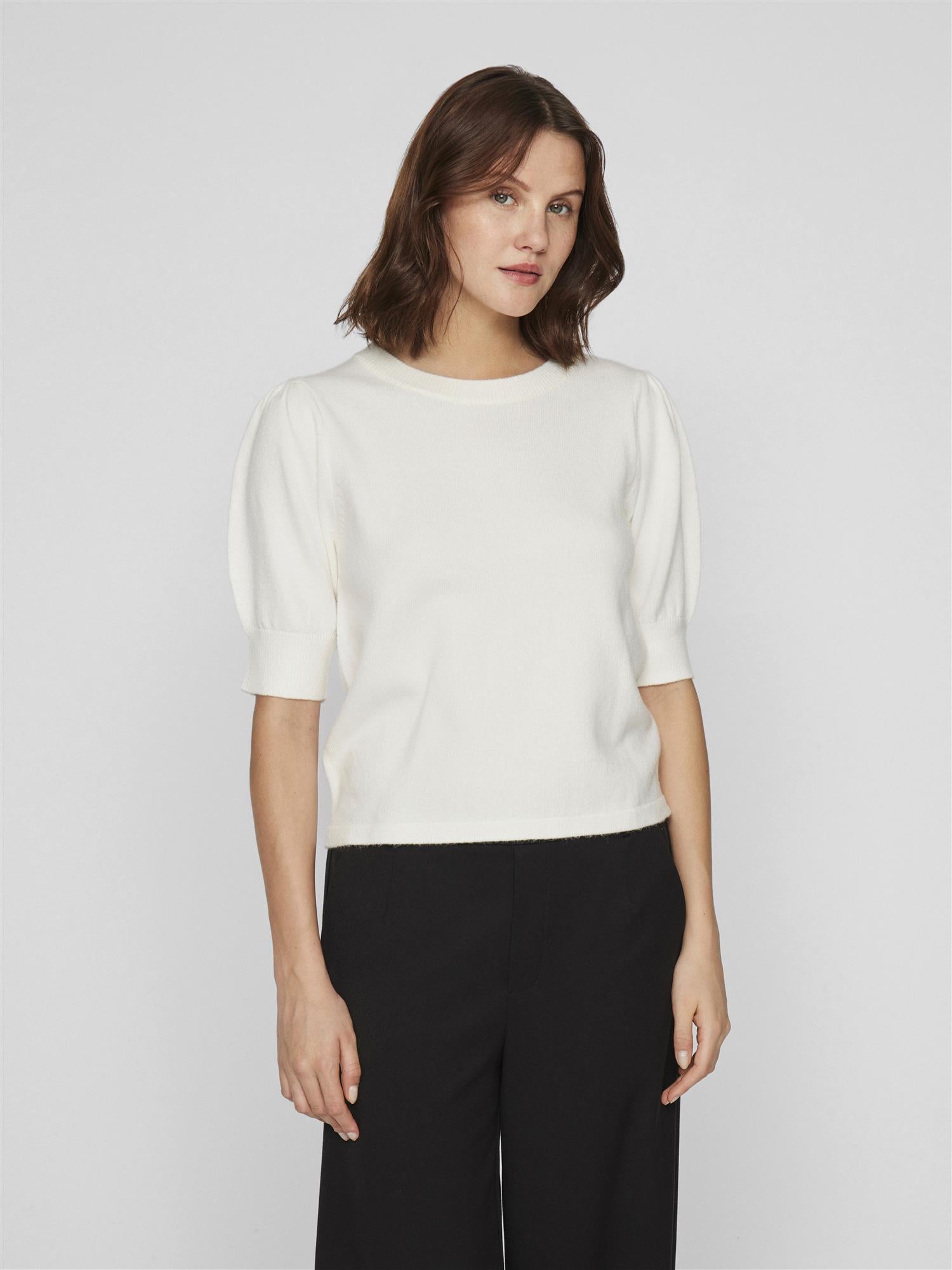 Ril Sleeve O-Neck fra Vila er en finstrikket topp i supermyk viskosekvalitet. Den har rund hals og korte ballongermer med ribbestrikkede kanter. Perfekt for både hverdagsbruk og spesielle anledninger.