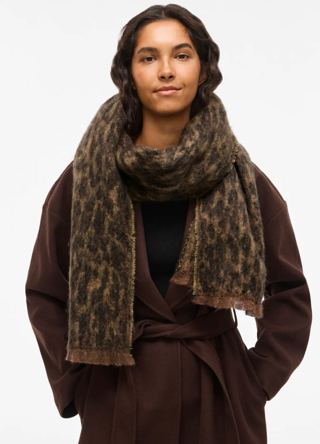 Nydelig skjerf med leopard mønster, laget i et mykt og lett materiale, som gir både varme og stil. Perfekt til å fullføre ethvert antrekk, enten det er til hverdags eller spesielle anledninger.