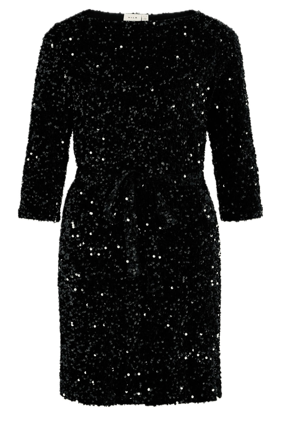 Faith Boatneck Dress fra Vila er en stilren og festklar kjole med diskret glitter og flatterende passform.